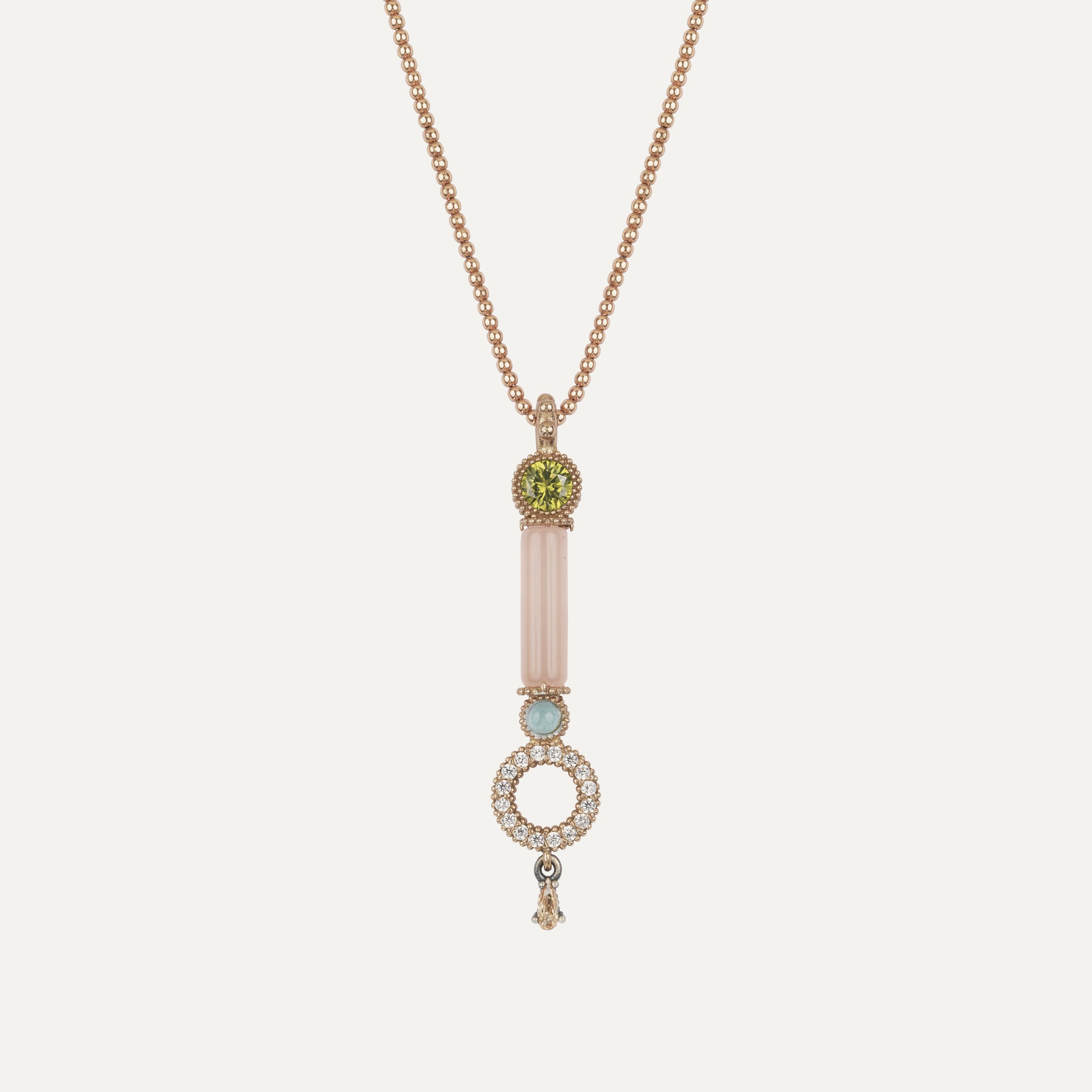 Pendant made of 925 sterling silver with 24kt rose gold plating, pink chalcedony, blue opal and zirconia.