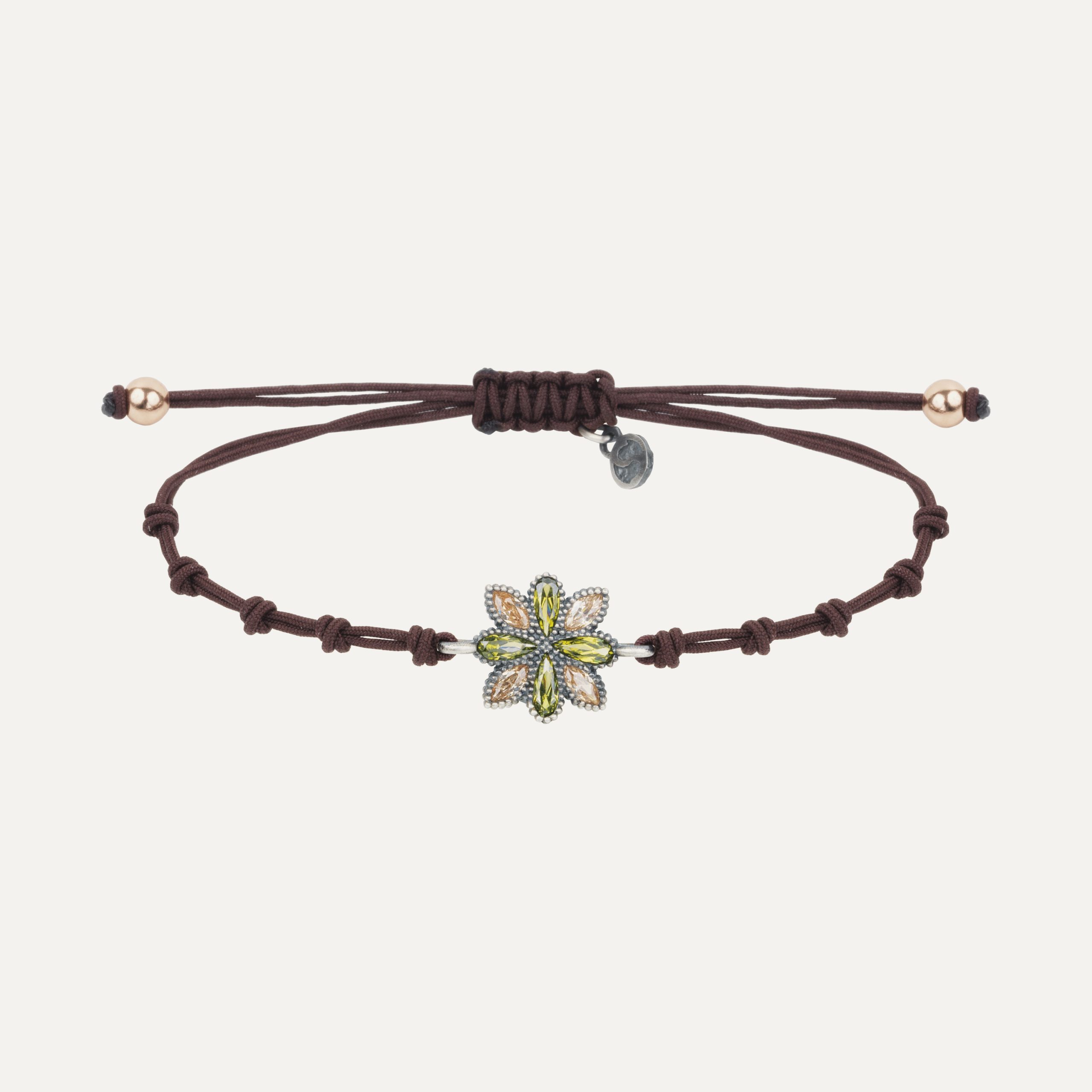 925 sterling silver bracelet with zircons and nylon. It is available in two color combinations and two finishes.