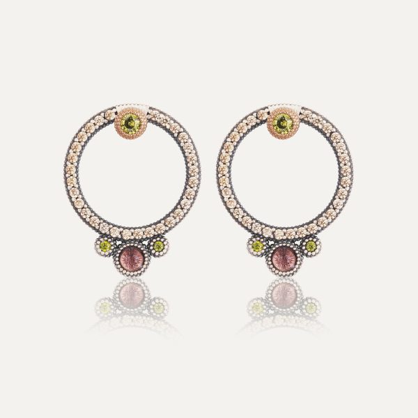 925 sterling silver earrings with antique finish, pink tourmaline and zirconia.