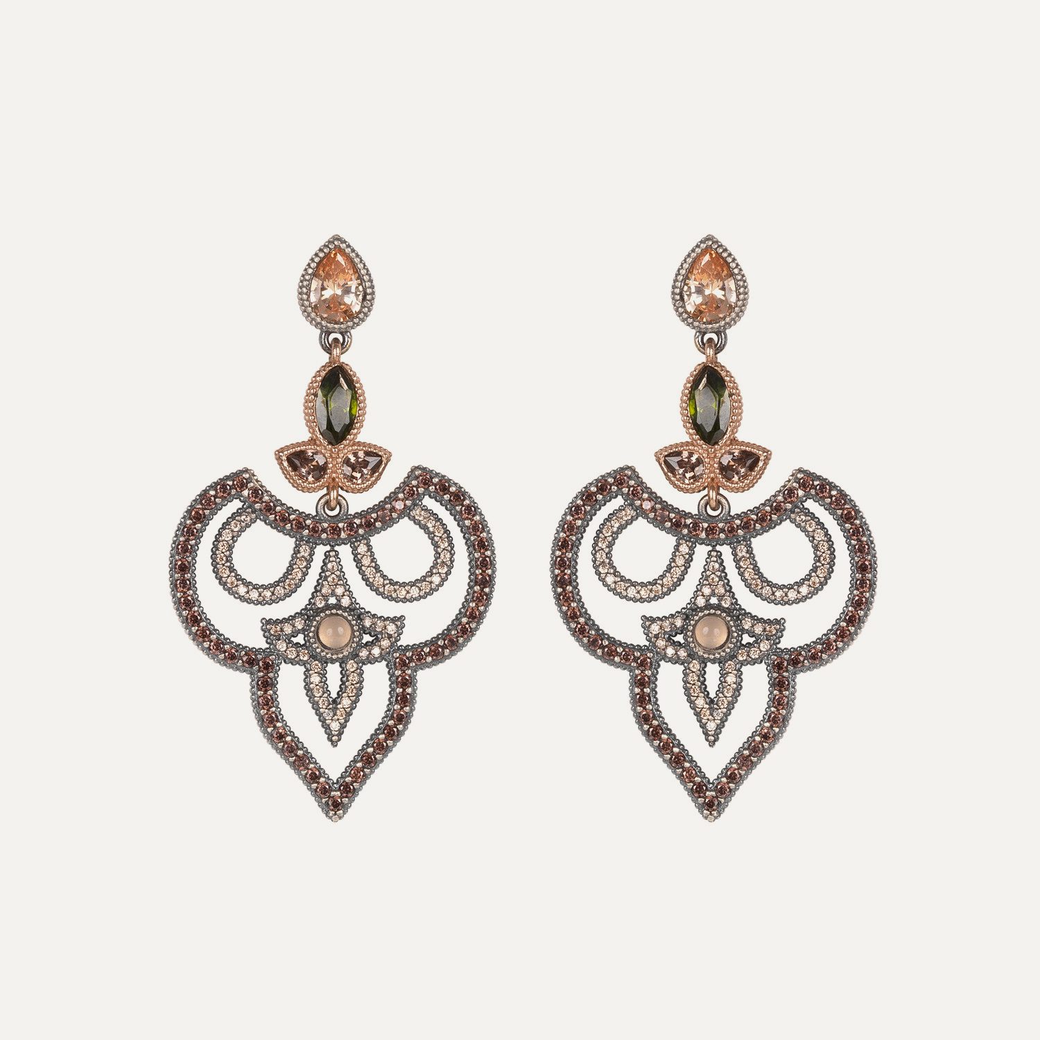 925 sterling silver earrings with antique finish, chalcedony, smoky quartz and zirconia.