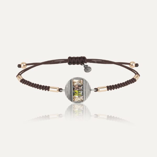 925 sterling silver bracelet with antique finish, zircons and nylon.