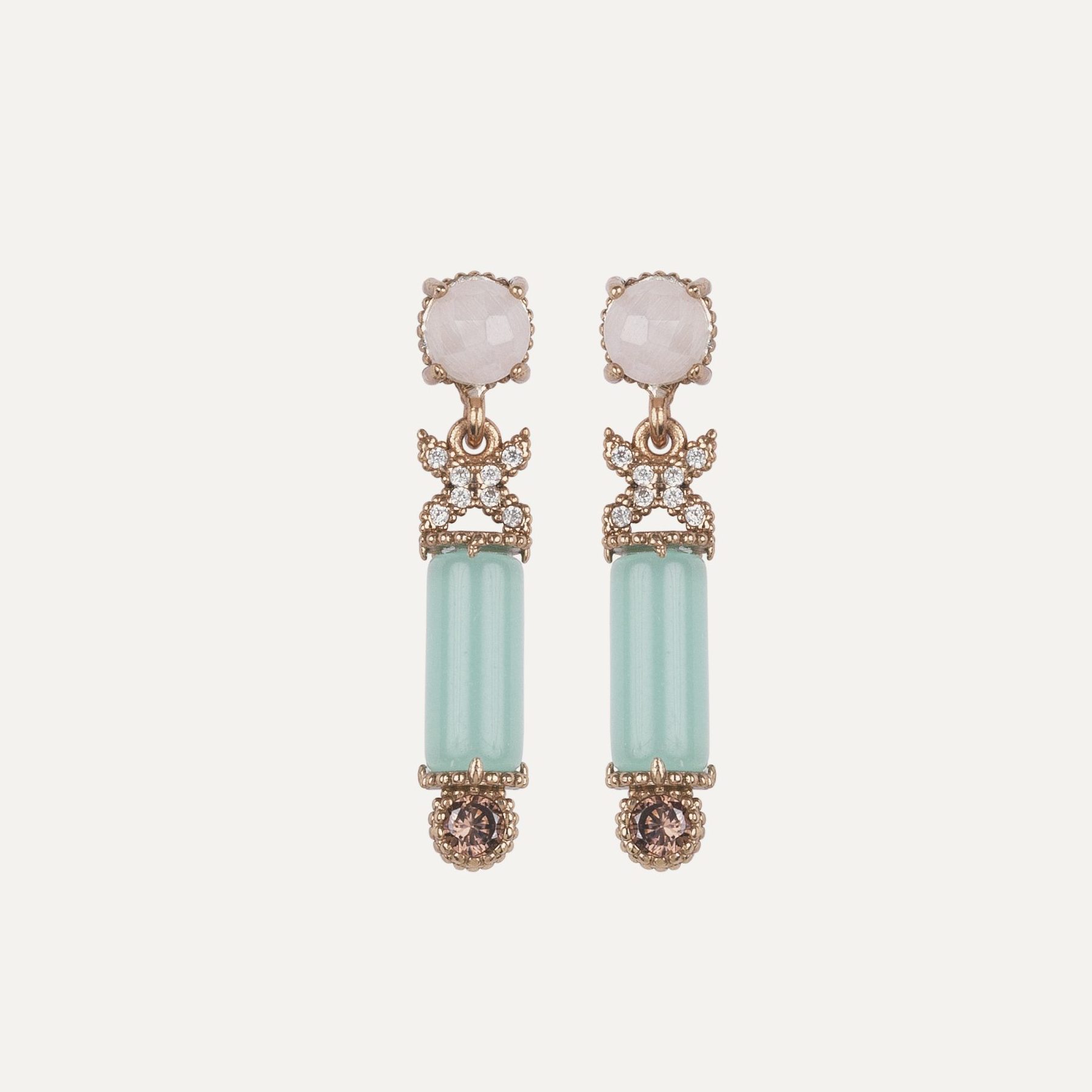 Sterling silver 925 earrings with 24kt rose gold plating, chalcedony, rose quartz and zirconia.