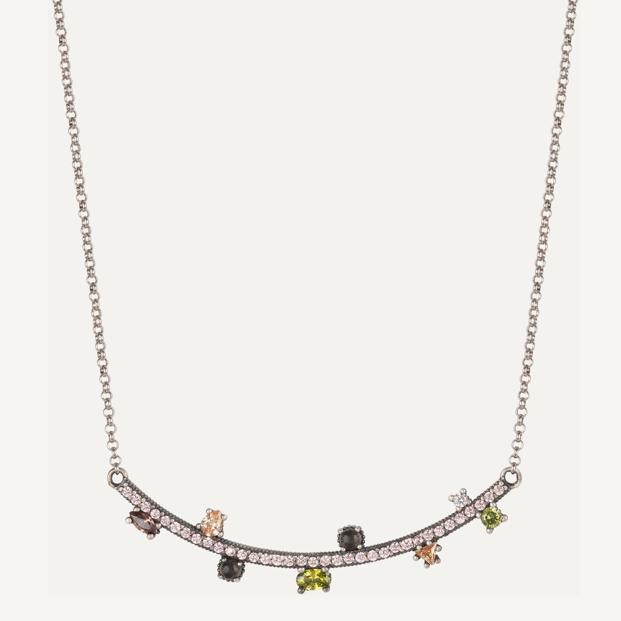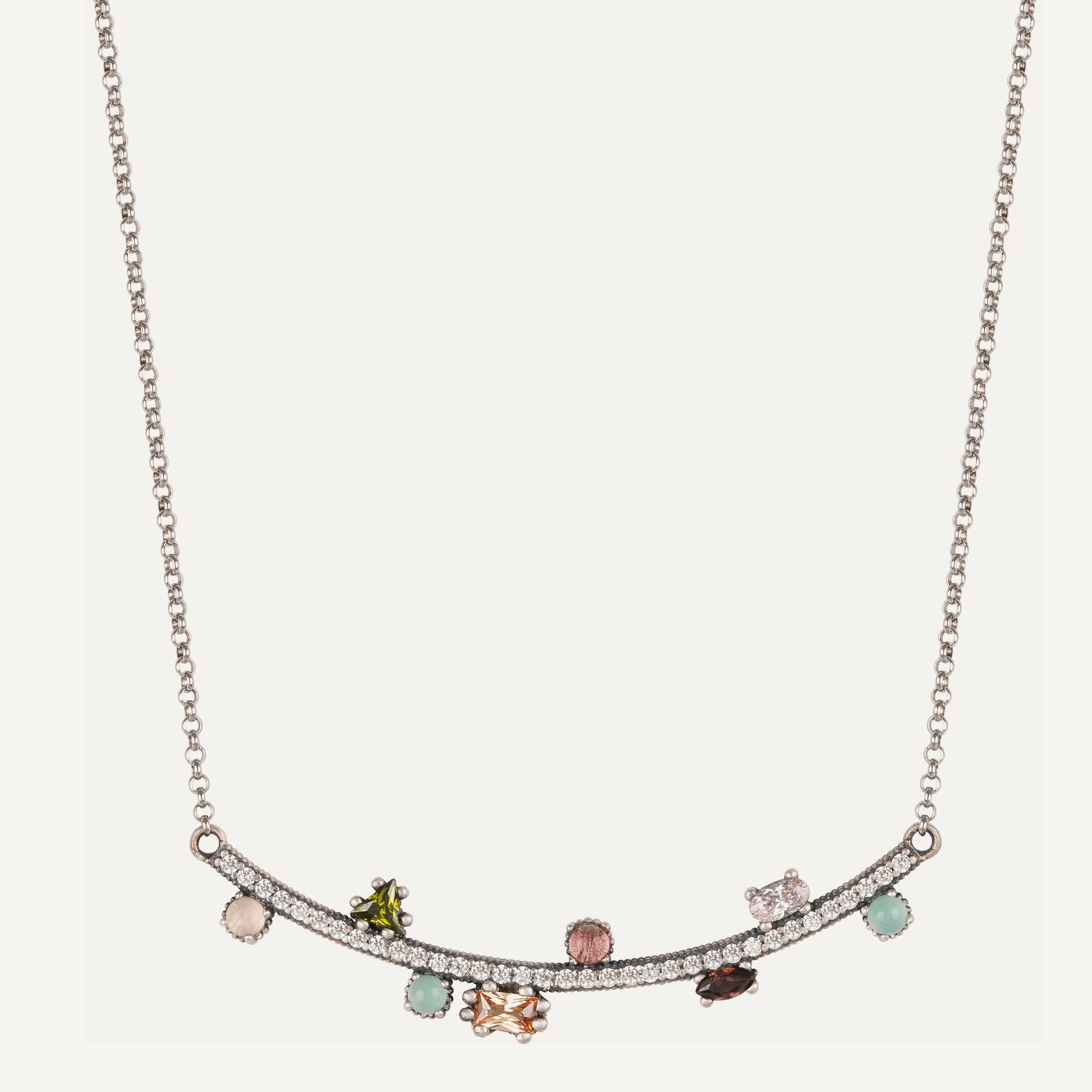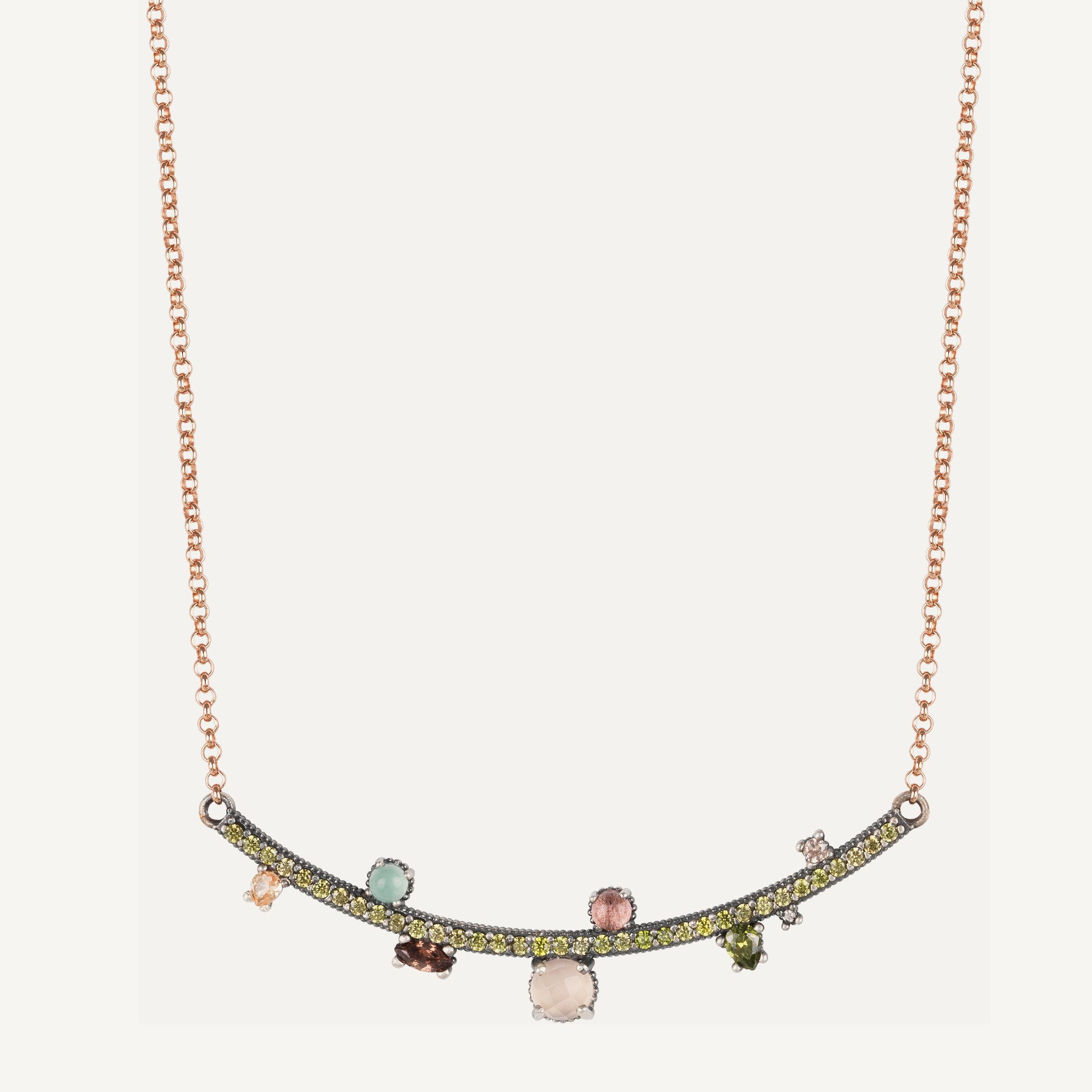 Pendant made of 925 sterling silver, pink tourmaline, chalcedony, rose quartz and zirconia.