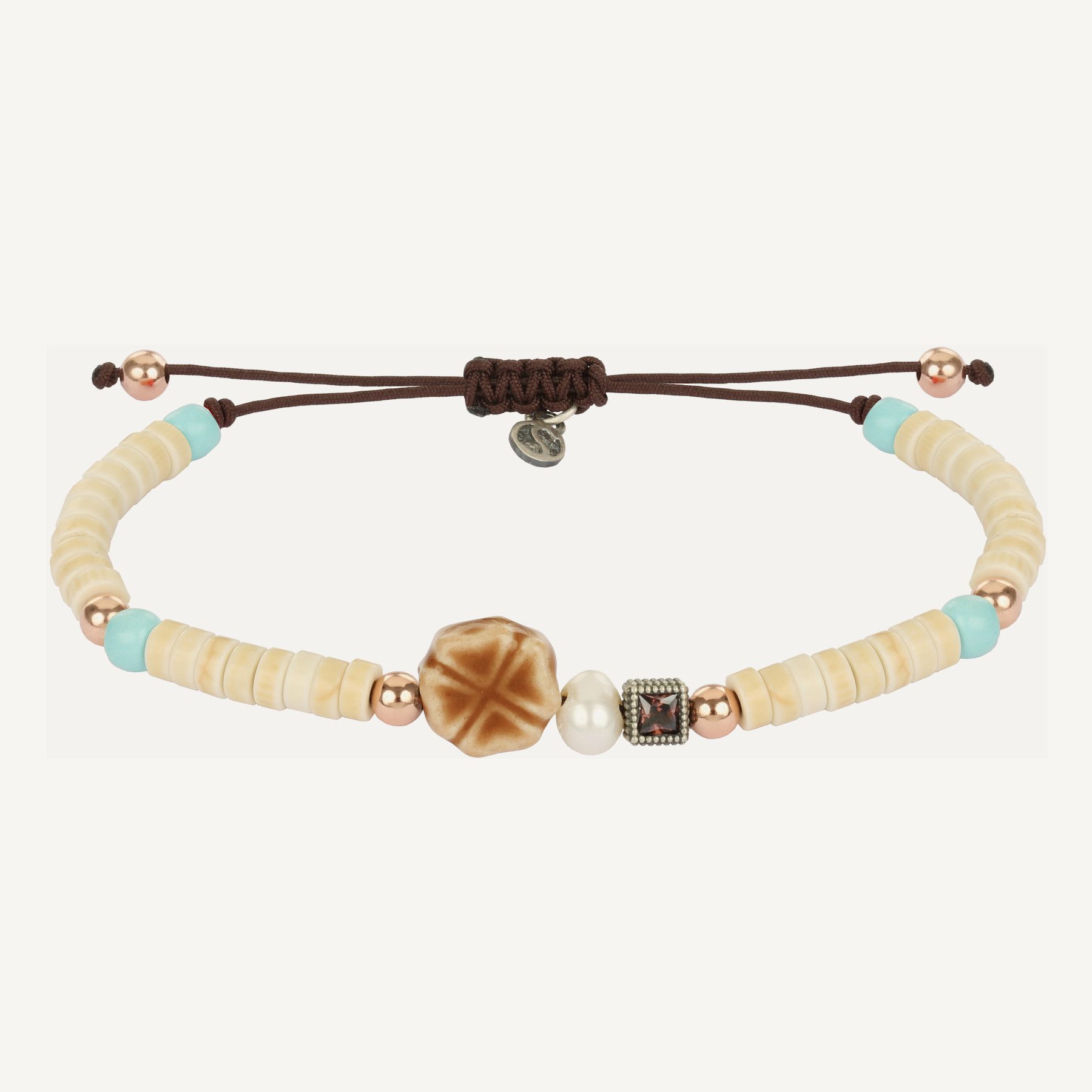 Bracelet made of sterling silver, pearl, turquoise, zirconia, glass beads, ceramic and nylon.