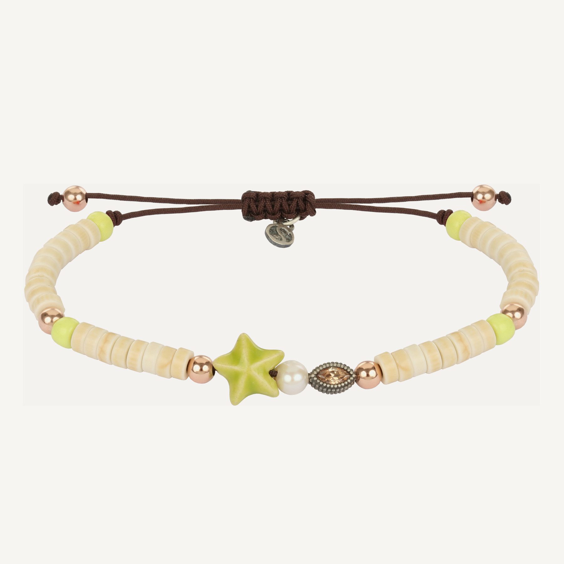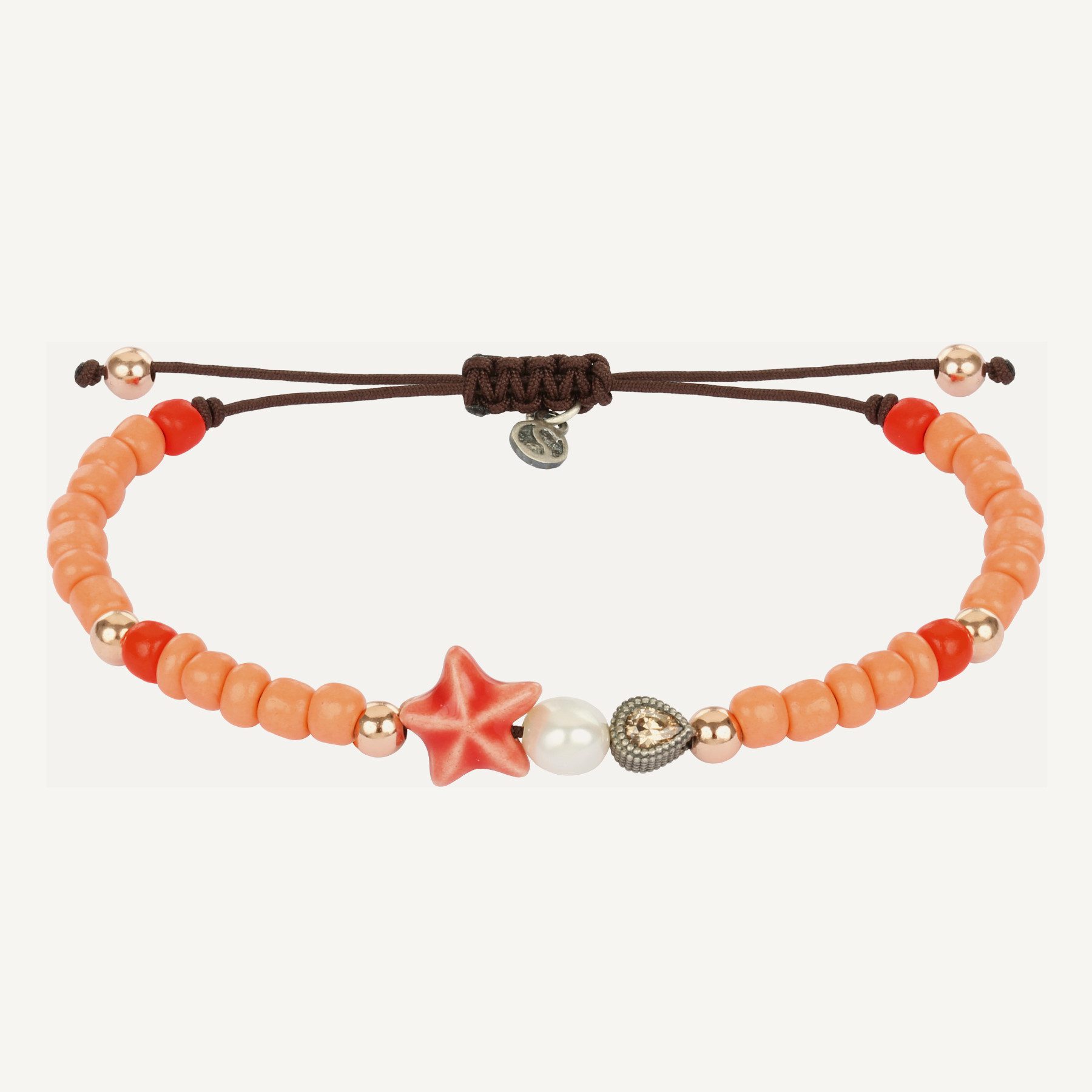 Bracelet made of sterling silver, pearl, zirconia, glass beads, ceramic and nylon, in two color combinations to choose from.