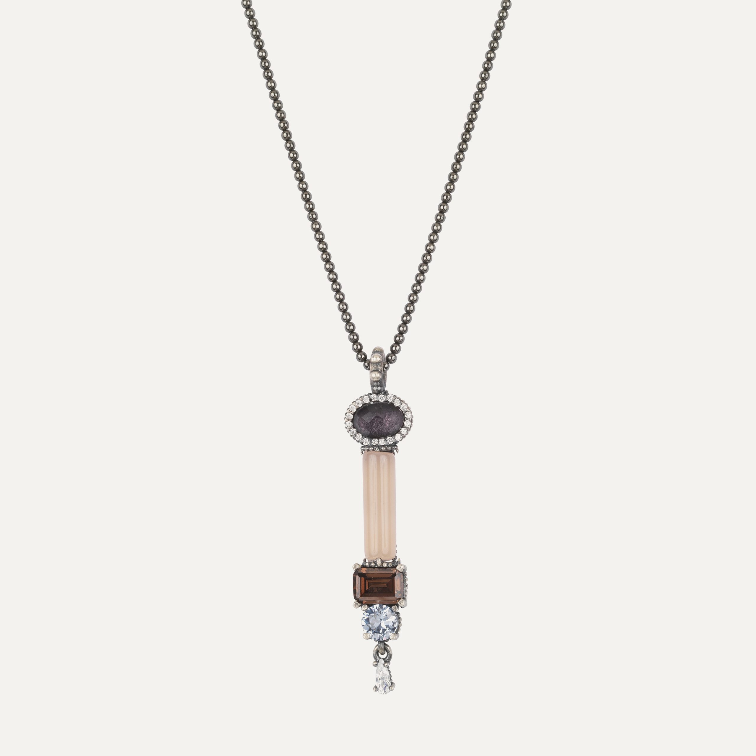 Pendant made of 925 sterling silver with 24kt rose gold plating, chalcedony, pink tourmaline and zirconia.