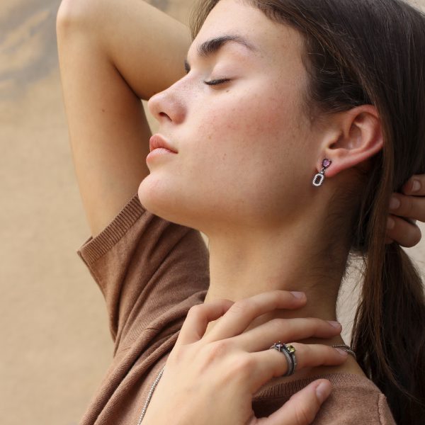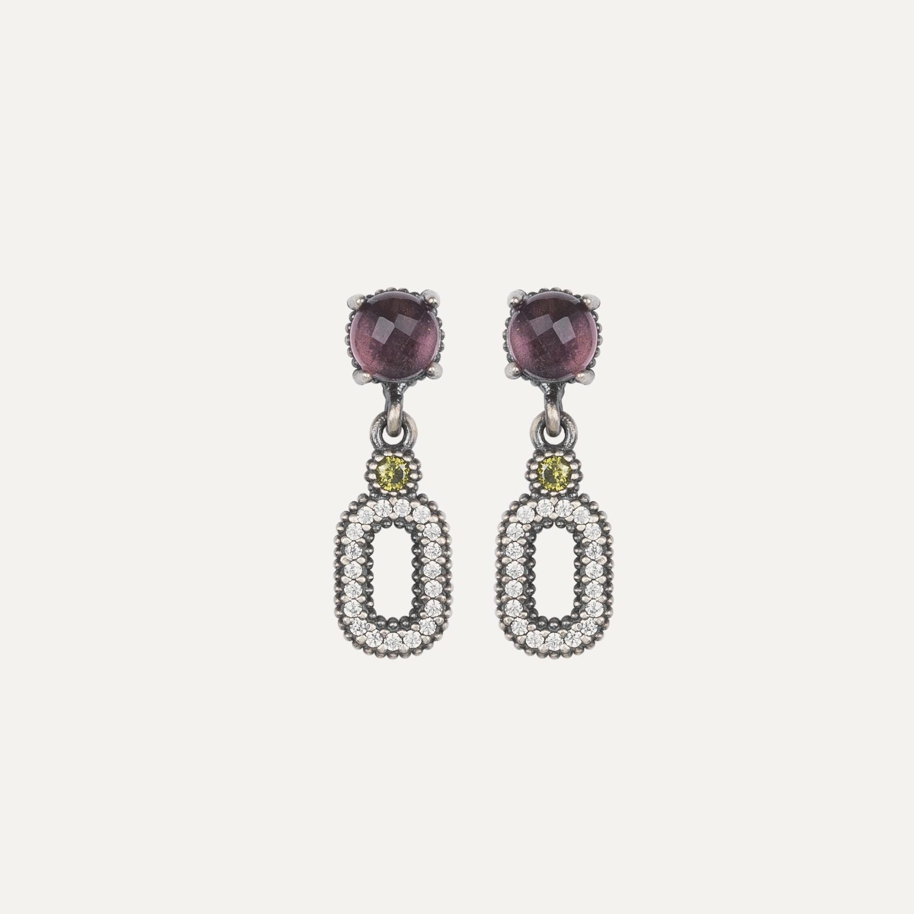 925 sterling silver earrings with antique finish, citrine, chalcedony, tourmaline and zirconia.