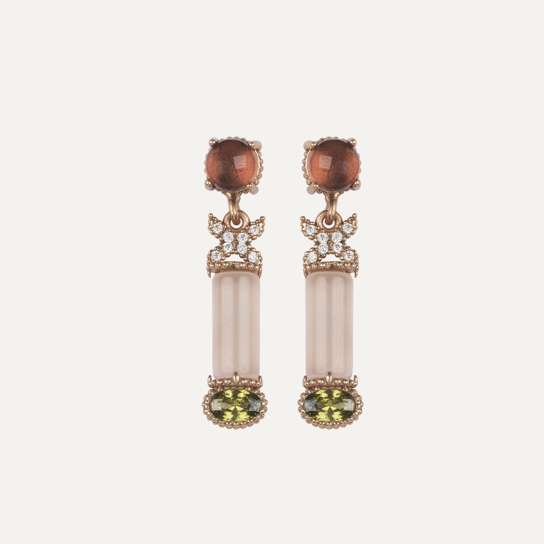 Sterling silver 925 earrings with 24kt rose gold plating, rose quartz, pink tourmaline and zirconia.