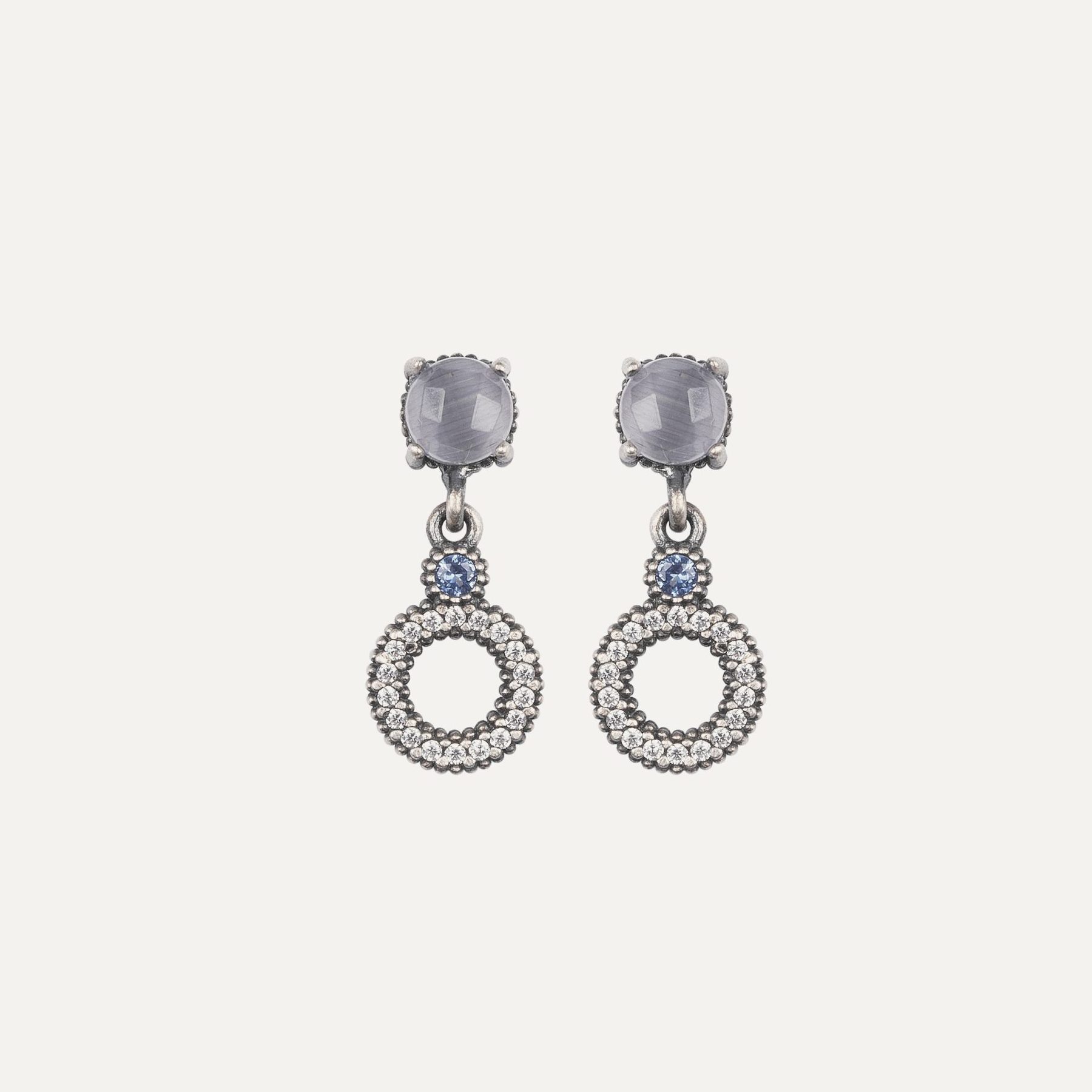 925 sterling silver earrings with antique finish, chalcedony, gray quartz and zirconia.
