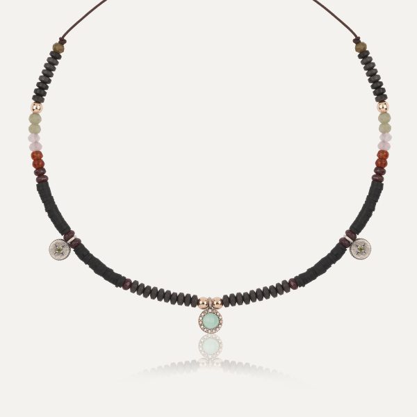 Pendant made of 925 silver, chalcedony, zirconia, glass beads, hematite, rubber and nylon.