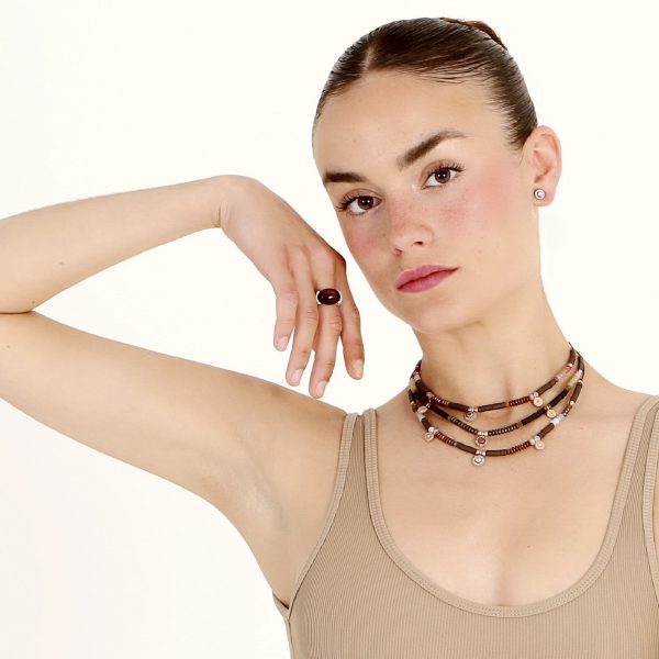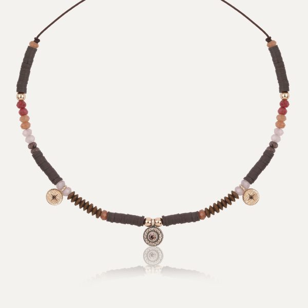 Pendant made of 925 silver, zirconia, glass beads, hematite, rubber and nylon.