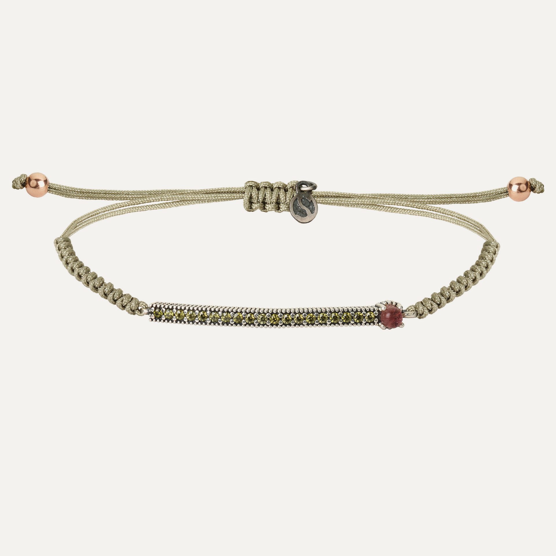 Bracelet made of 925 sterling silver, pink tourmaline, zirconia and nylon.
