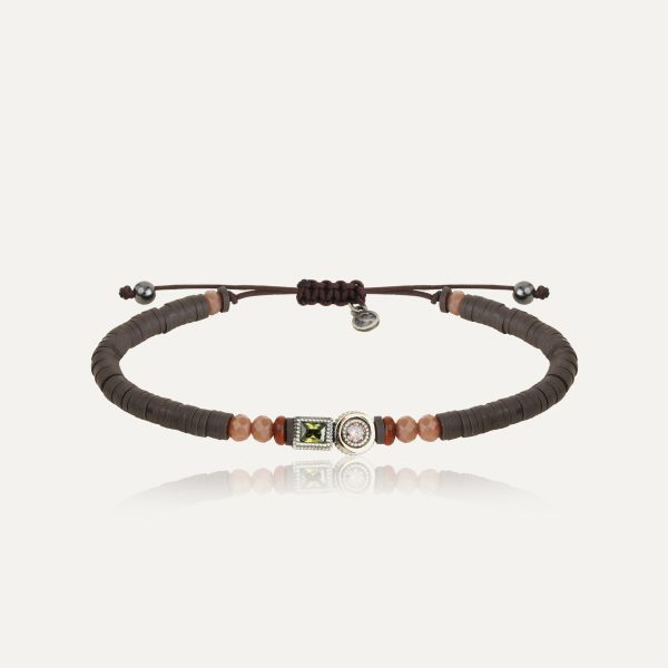 925 sterling silver bracelet with 9 kt gold, red jasper, crystal beads, hematite, rubber and nylon.