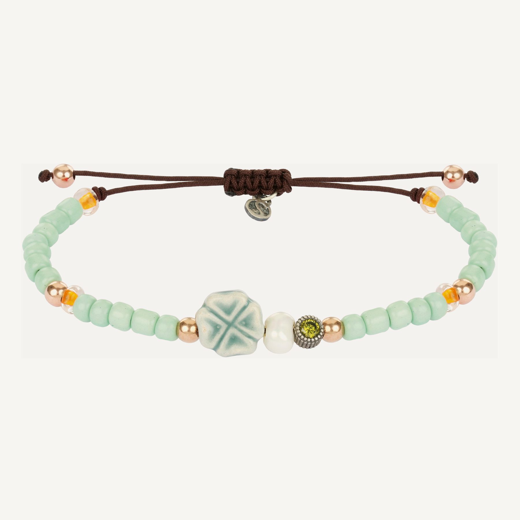 Bracelet made of sterling silver, pearl, zirconia, glass beads, ceramic and nylon, in two color combinations to choose from.