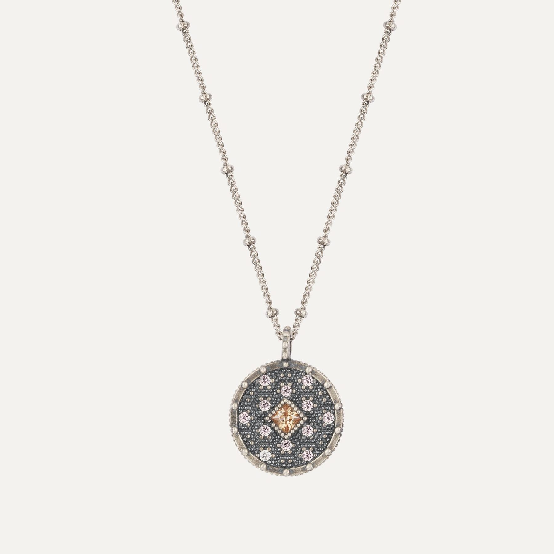 925 sterling silver pendant with antique finish, chalcedony and zirconia.