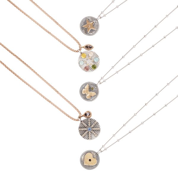 Pendant made of 925 silver, zirconia, glass beads, hematite, rubber and nylon.
