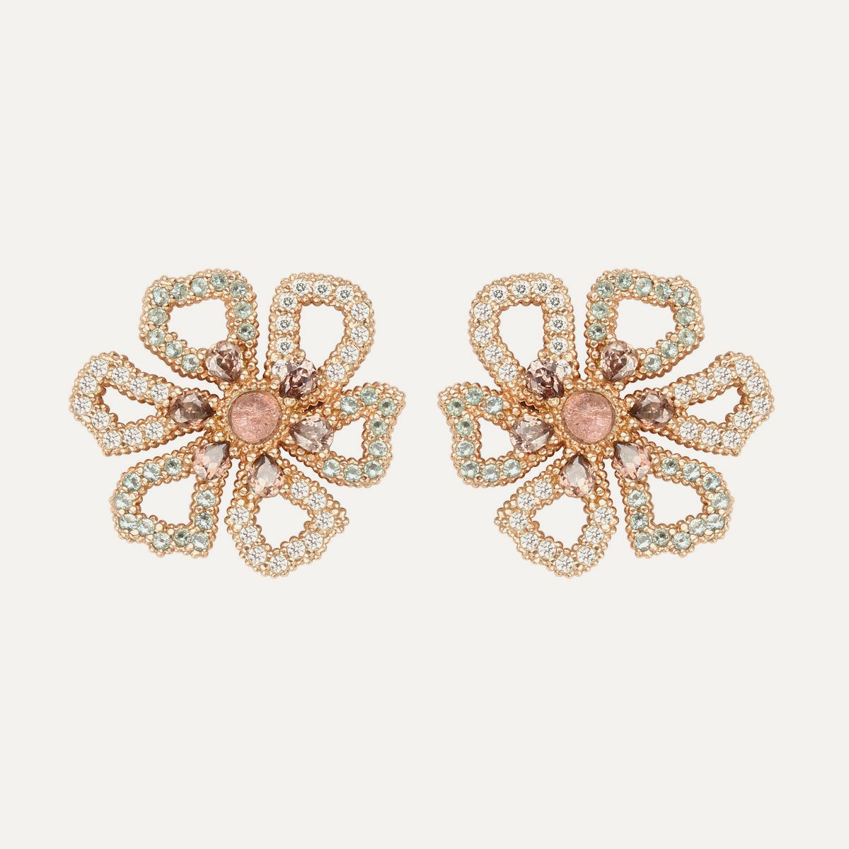 Sterling silver 925 earrings with 24kt rose gold plating, quartz and zirconia.