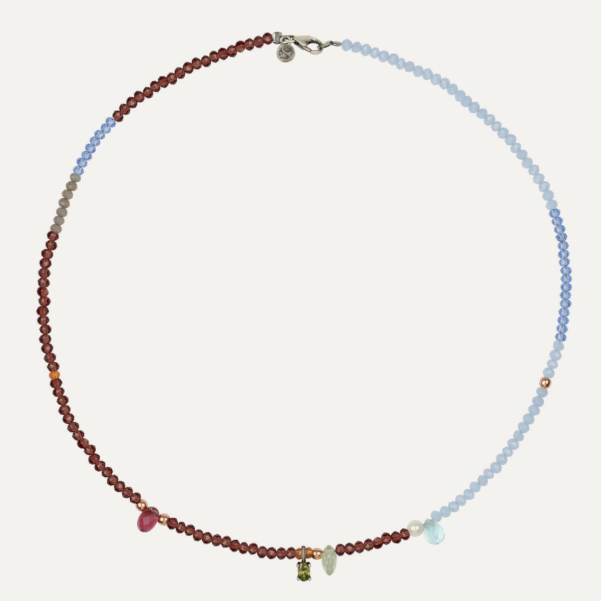 Pendant made of 925 sterling silver, aquamarine, pink tourmaline, pearl and crystal beads.
