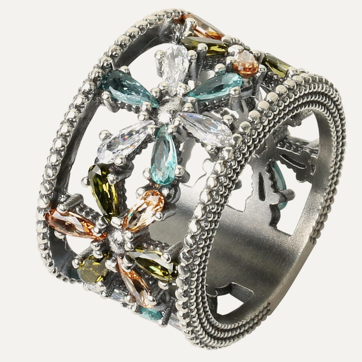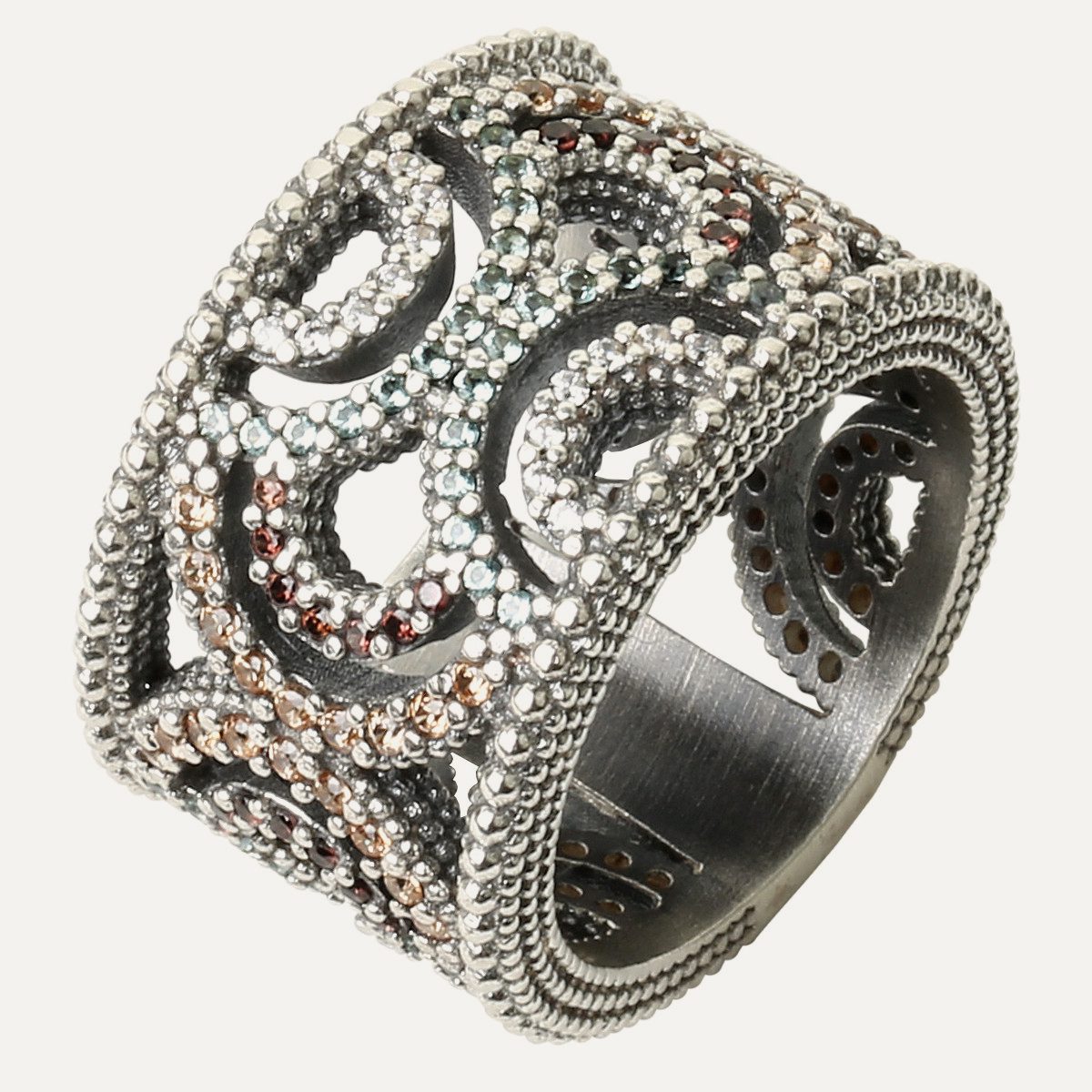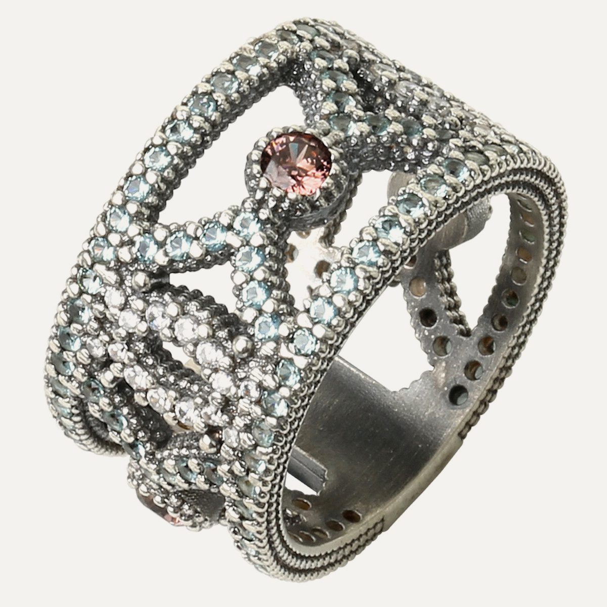 925 sterling silver ring with antique finish and zircons.