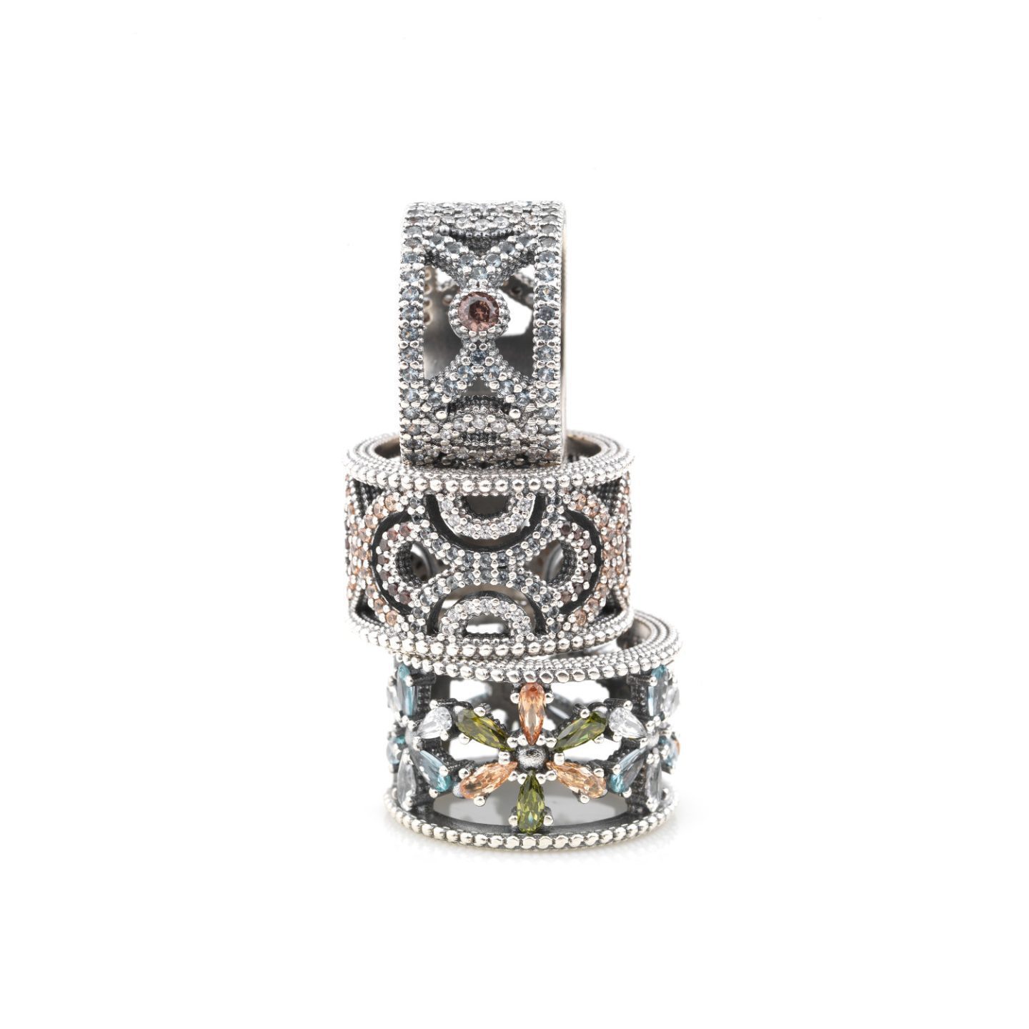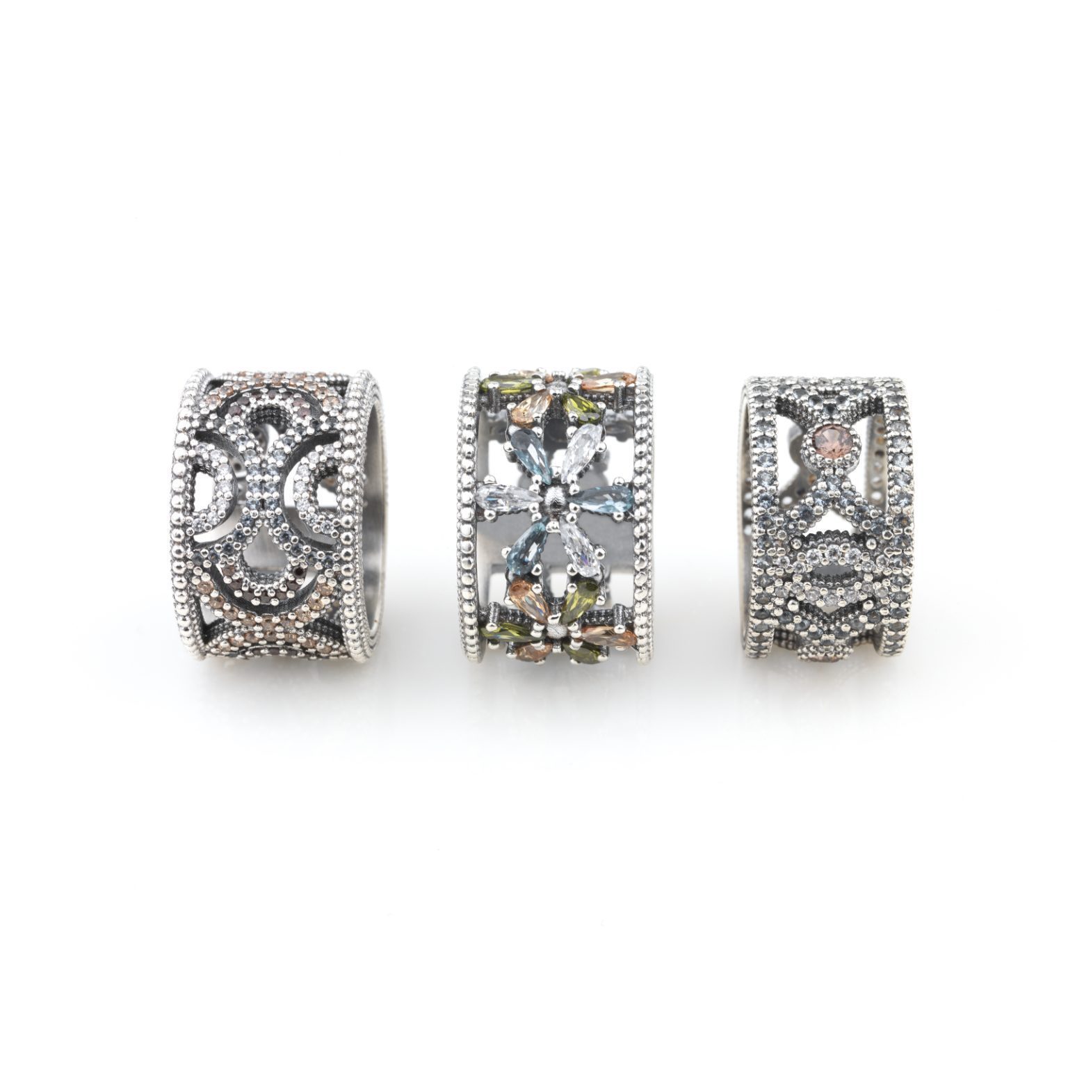 Ring in 925 sterling silver with antique finish and zircons.