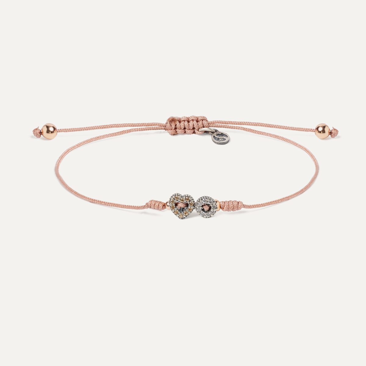The Rosana bracelet from the Athenia collection in antiqued silver with 24kt rose gold plated details, is a charming piece that combines elegance and modern design in an adjustable pink macrame. Perfect for those seeking a touch of femininity and sophistication, this bracelet features two interlinks adorned with zirconia, one in white and one in brown, which bring a subtle and alluring sparkle to the ensemble.