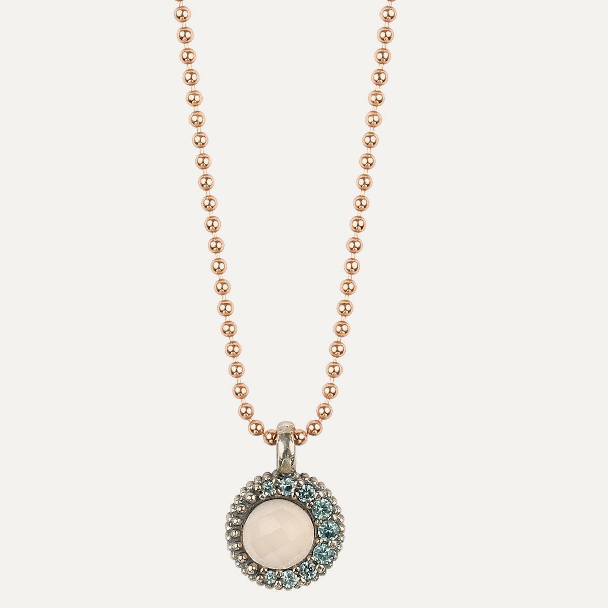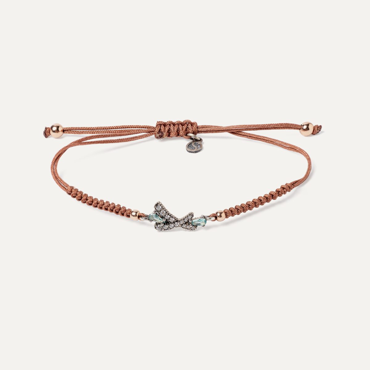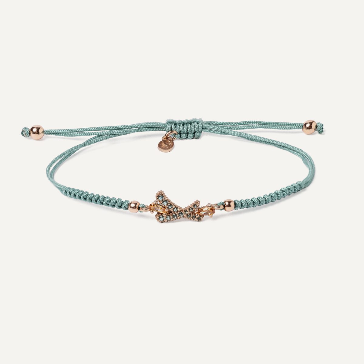 The beads that complement the set are made of sterling silver with 24kt rose gold plating, and it closes with an adjustable macramé for greater comfort.