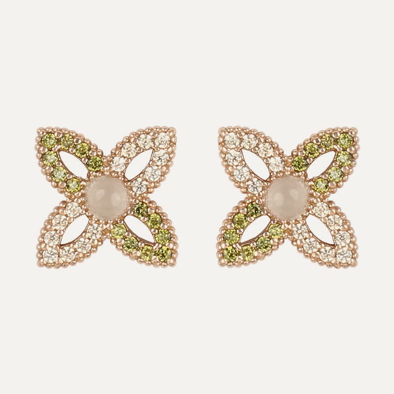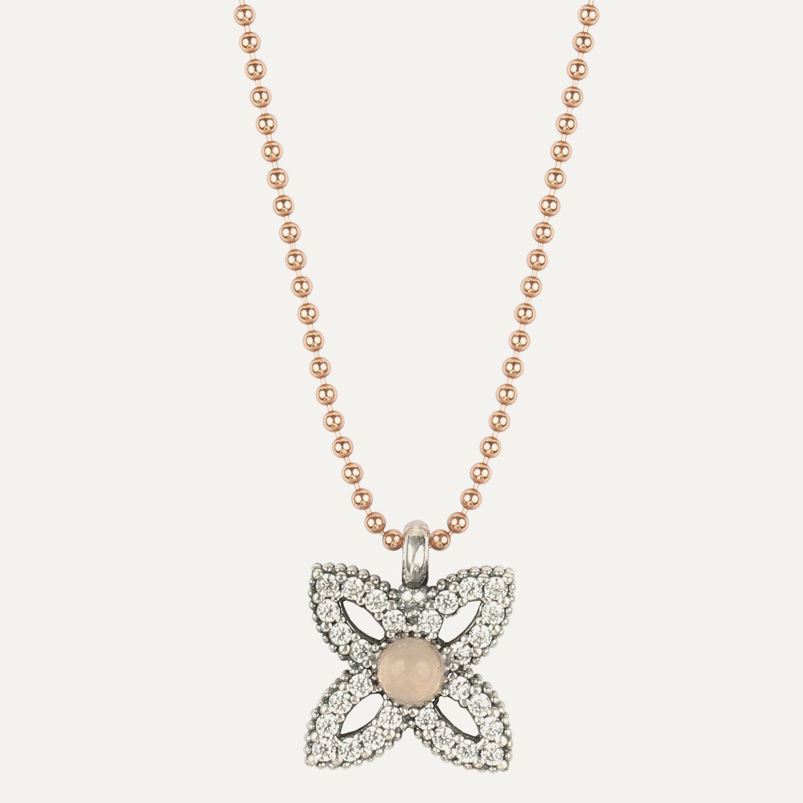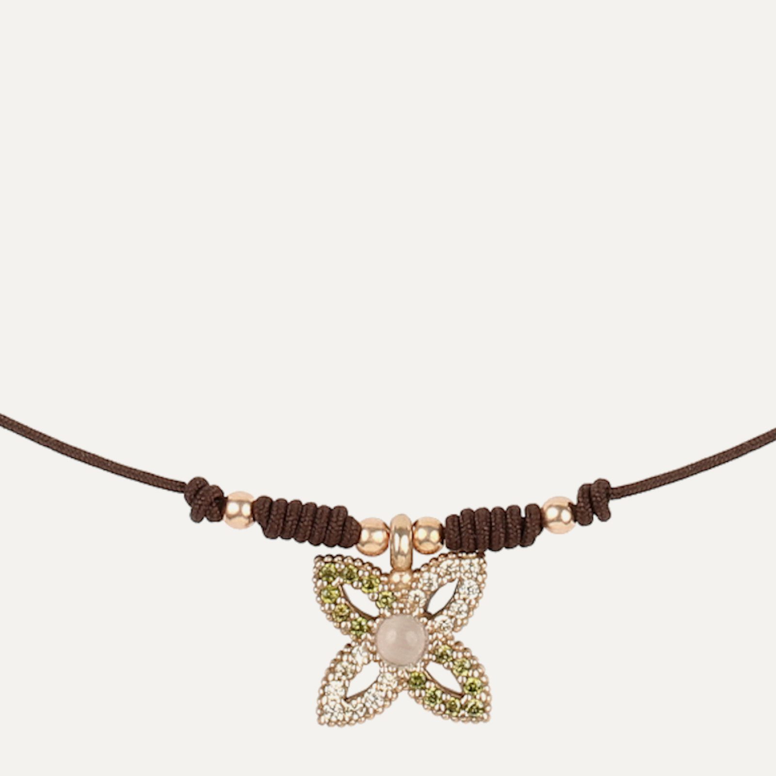 The beads that complement the set are made of sterling silver with 24kt rose gold plating, and it closes with an adjustable macramé for greater comfort.