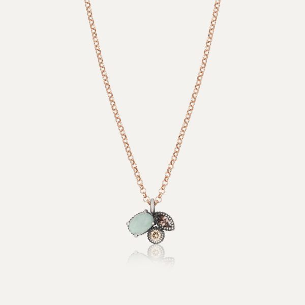 The delicate Julietta bracelets from Sunfield are totally irresistible and can be combined with a matching ring or pendant. The centerpiece is a combination of an oval faceted chalcedony cabochon, a brilliant-cut champagne zircon and a marquise-cut brown zircon. The rest of the bracelet is a silver chain plated in 18k rose gold and can be adjusted in size.