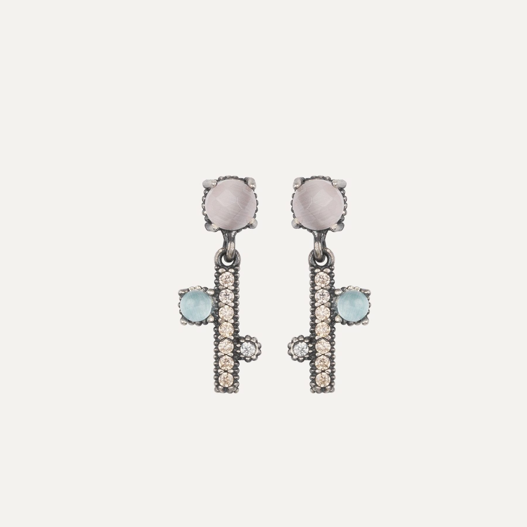 The Sunfield Carla rings are ideal for everyday wear and to combine with each other. It is made of 925 sterling silver aged finish with a white brilliant-cut zirconia and a smooth opal cabochon accompanied by white brilliant-cut zirconia that run along the arm.