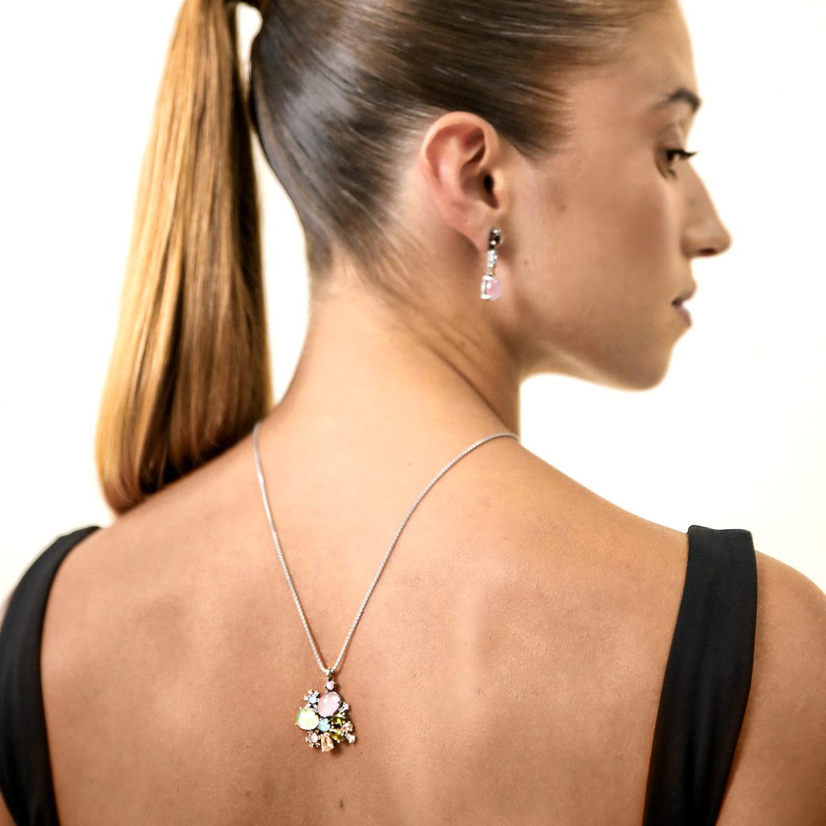 Bracelet made of 925 sterling silver, rose quartz, faceted colored quartz in irregular sizes, zircons and nylon.