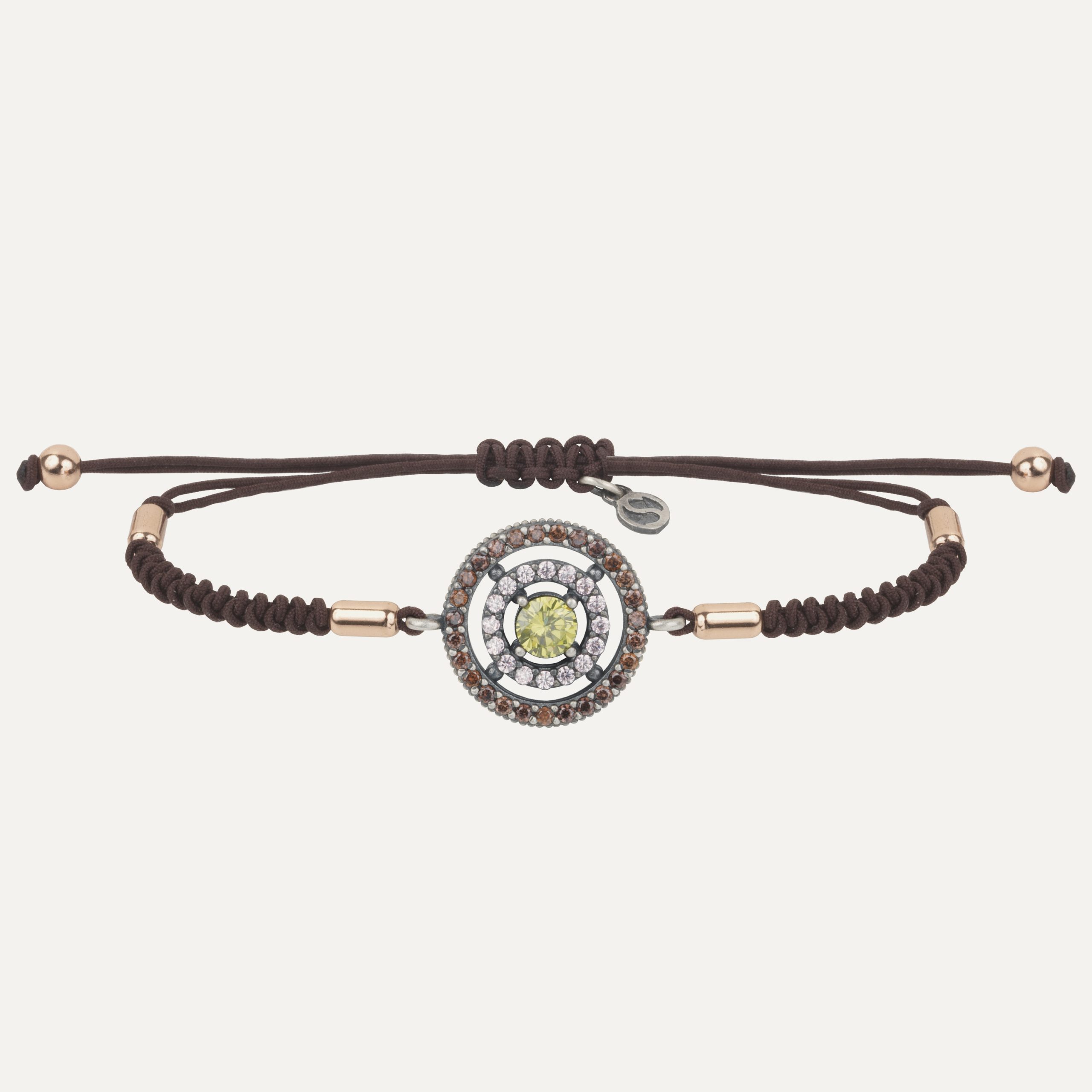 This Eiffel pendant is the little brother of the maxi necklaces of the Giselle in Paris collection. It is a sterling silver 925 pendant of 25 mm in diameter and is composed of a combination of peridot, champagne and pink light zirconia of different sizes. It hangs from an 18k rose gold plated silver chain 45 cm long.