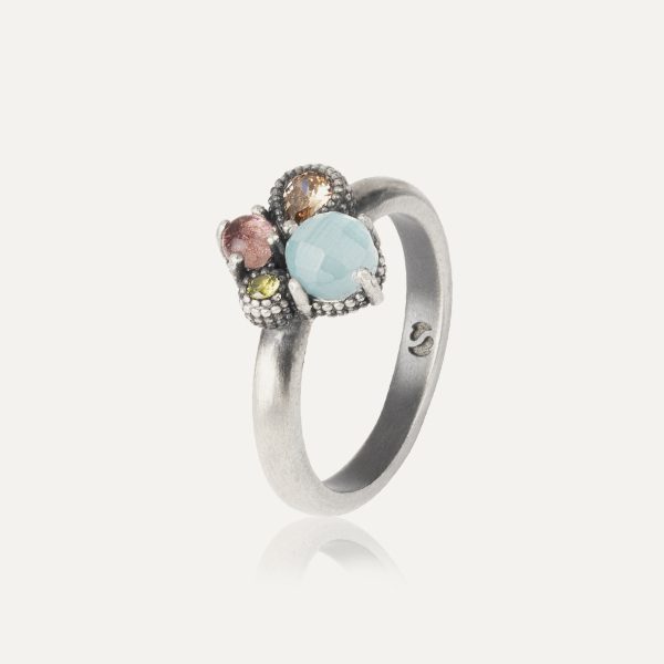 925 sterling silver bracelet with antique finish, aquamarine quartz, pink tourmaline and zirconia.