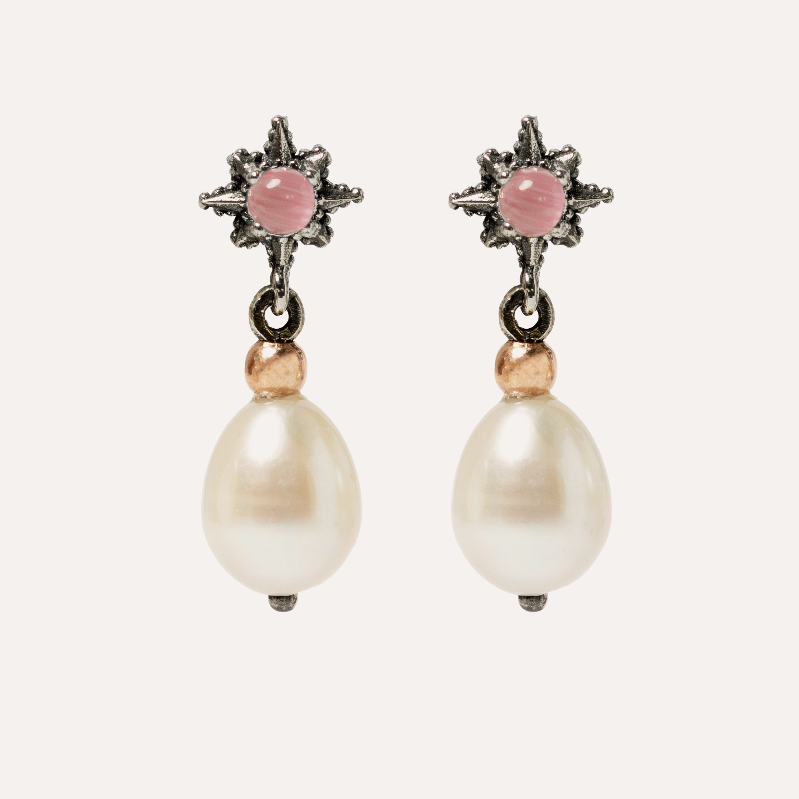 925 sterling silver earrings with antique finish, baroque pearl and zirconia.