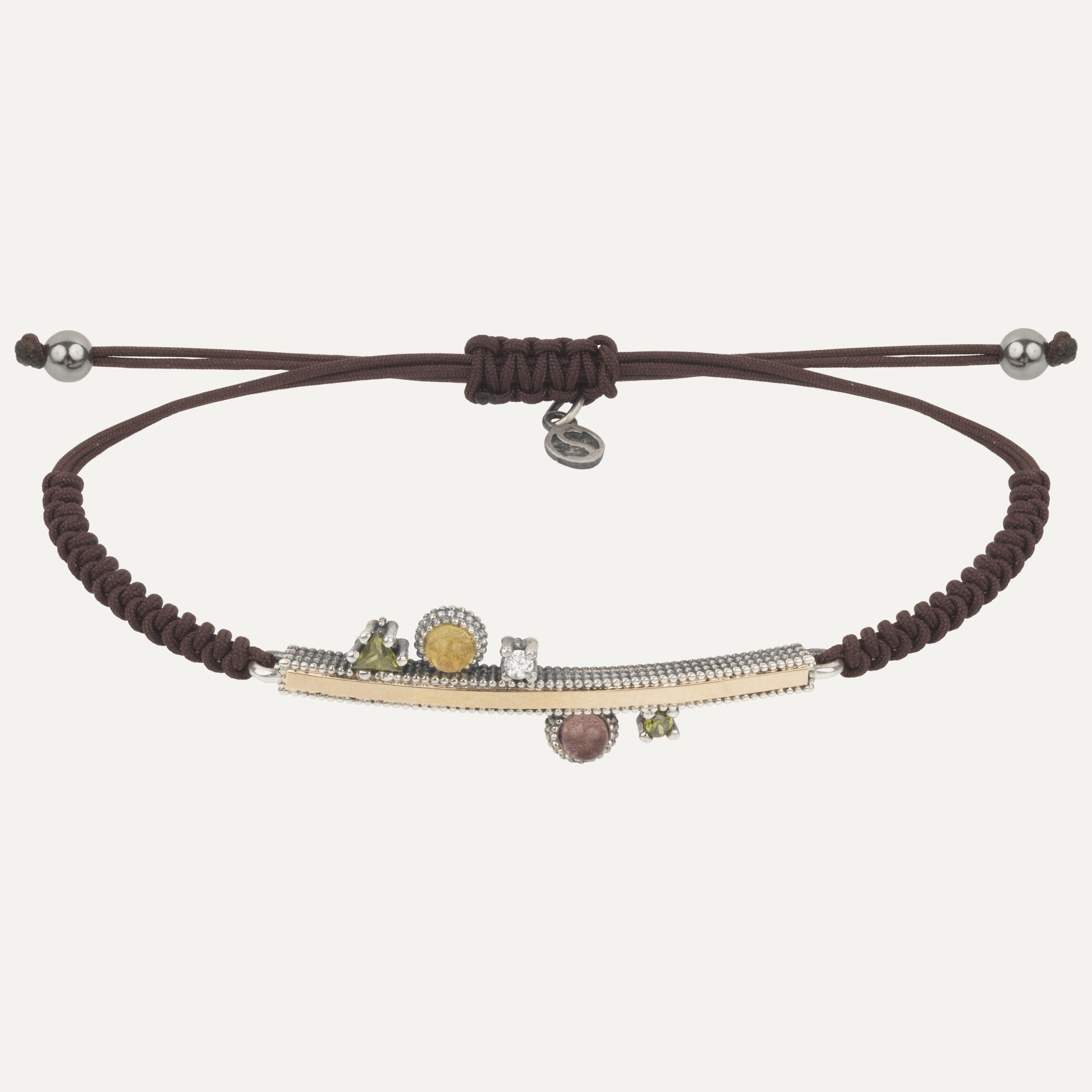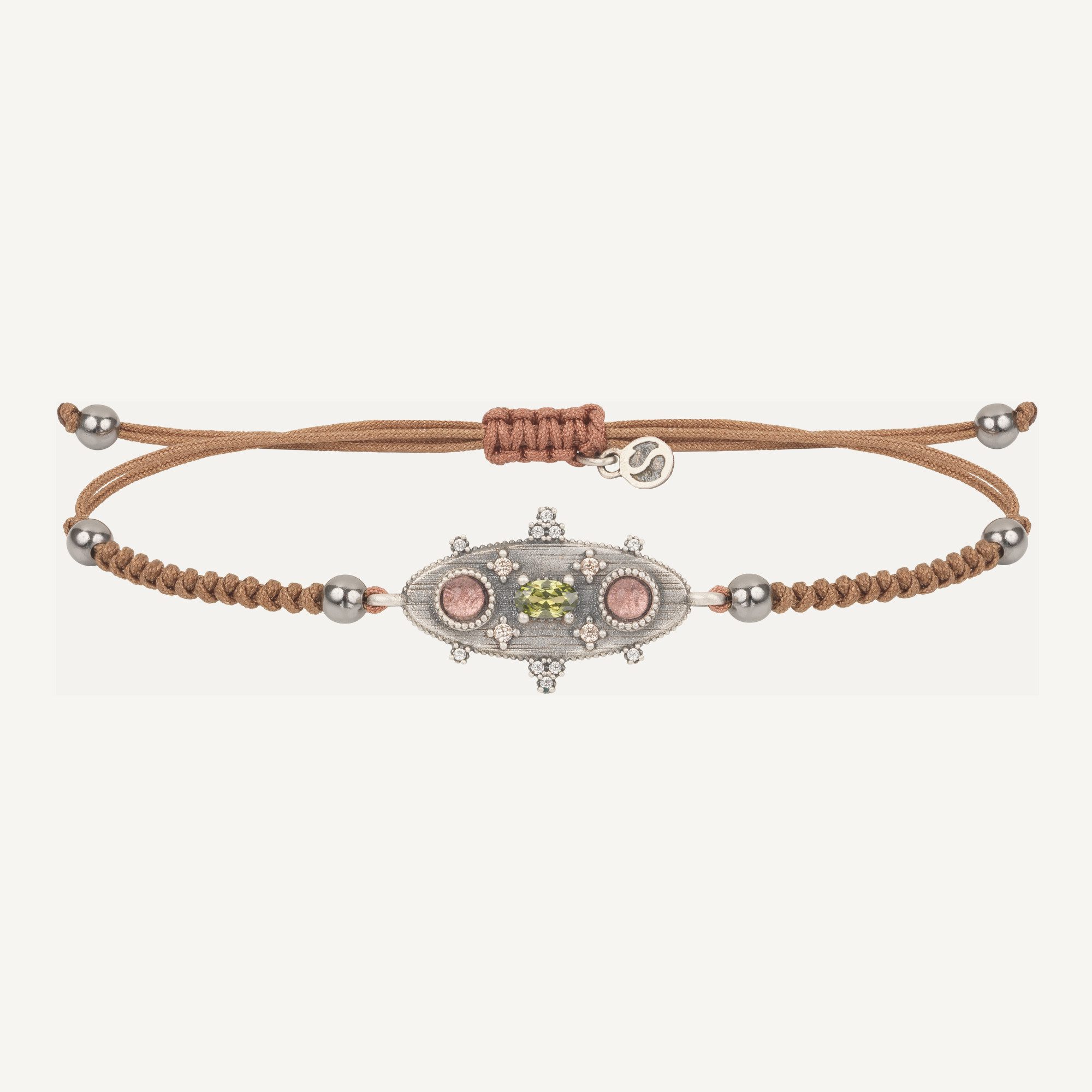 The Margot earrings by Sunfield are actually two earrings in one as they are disassembled obtaining a simple earring and a more extreme one. In this case it consists of a 5 mm diameter rose gold plated silver earring with brilliant cut peridot zirconia and the removable part of 925 sterling silver with antique finish of 26 mm long with champagne zirconia and brilliant cut peridot and a 3 mm diameter pink tourmaline cabochon.