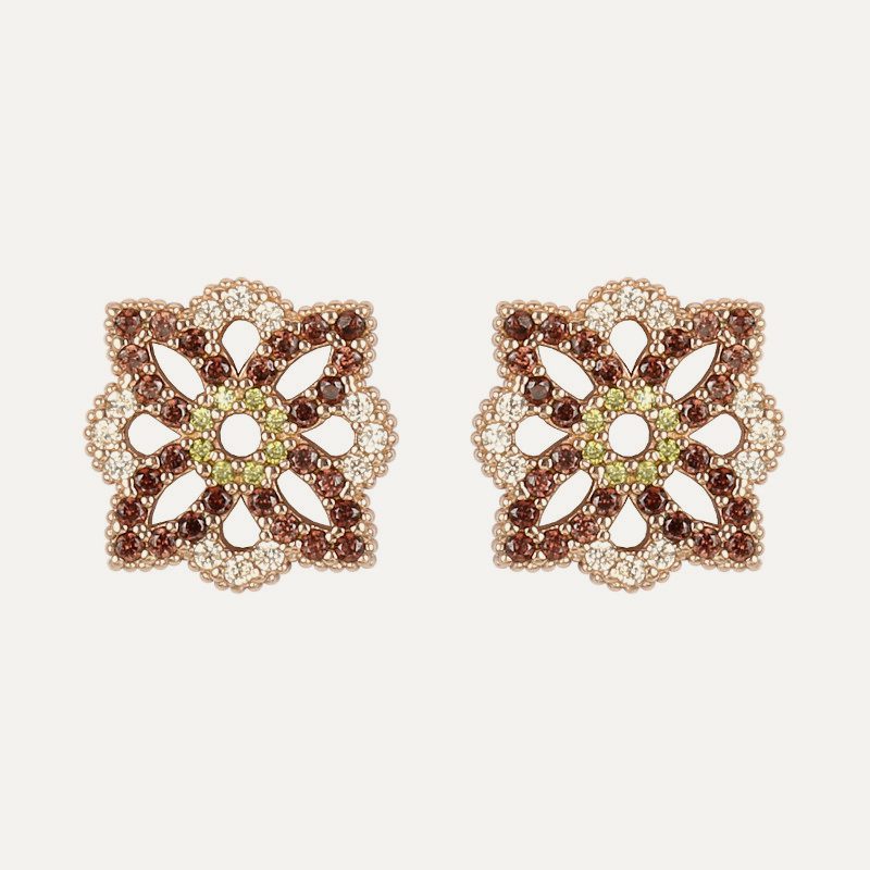 Estel Earrings are available in two stunning variations that play with color combinations and finishes to offer different styles, whether it’s the vintage charm of antiqued silver or the modern glamour of rose gold plating. Whichever you choose, these earrings are a true spectacle of sparkle and sophistication.