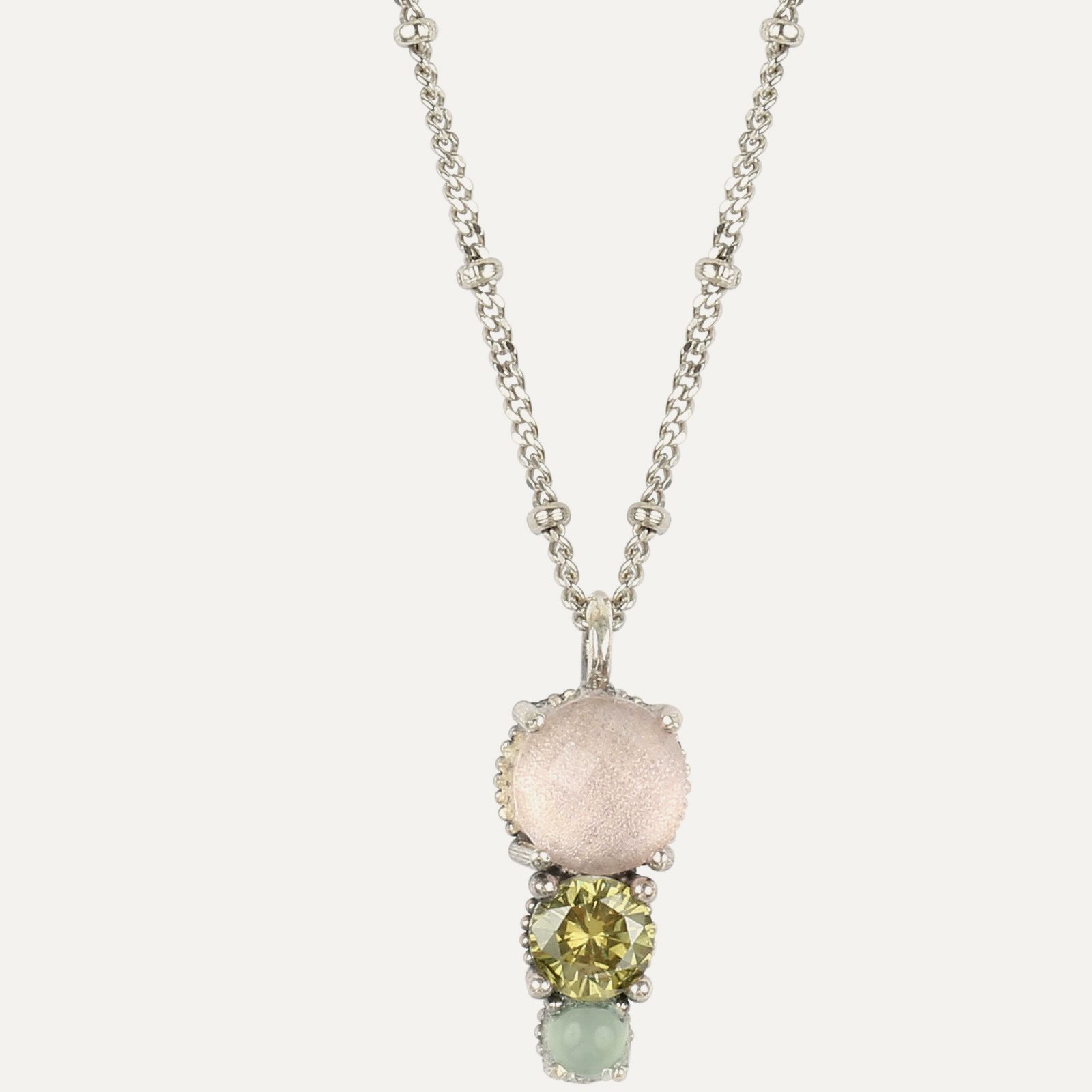 They are composed of a 5×3 mm oval-cut zirconia and a cabochon and a 5 mm smooth cabochon, held by a silver ring with antique finish, in two color combinations to choose from. The total length of these small earrings with movement is 1.5 cm.