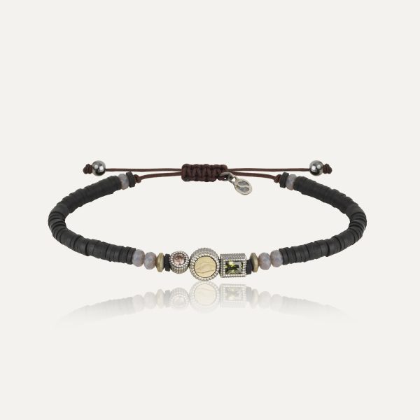 The Sunfield Paris pendants are delicate, balanced and with something in their design that makes them unusual and original. It is made of 925 sterling silver and consists of a central zirconia of 5 mm in diameter color Brazil green brilliant cut from which hangs a piece of chain with a circular shaped motif with a 9k yellow gold bezel and a brilliant cut brown zirconia. The chain is 41 cm long.
