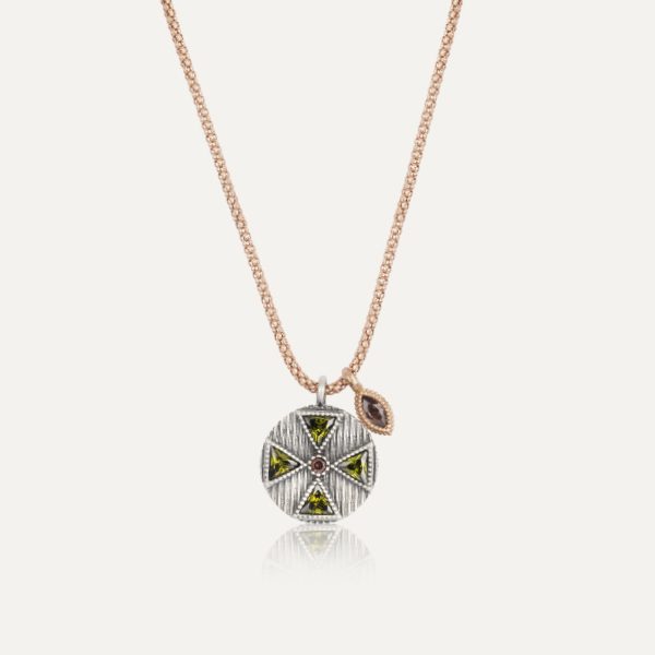 With these bracelets we put the finishing touch to the mini collection Pavlova of Sunfield as there are also pendants and earrings to match. As a centerpiece wears a medal of 15 mm in diameter of 925 sterling silver with antique finish decorated with four triangle-cut peridot zirconia and a brilliant-cut brown. The rest of the bracelet is made of brown nylon thread that combines a nice macramé and silver pieces plated in 18k rose gold. It also adjusts in size.