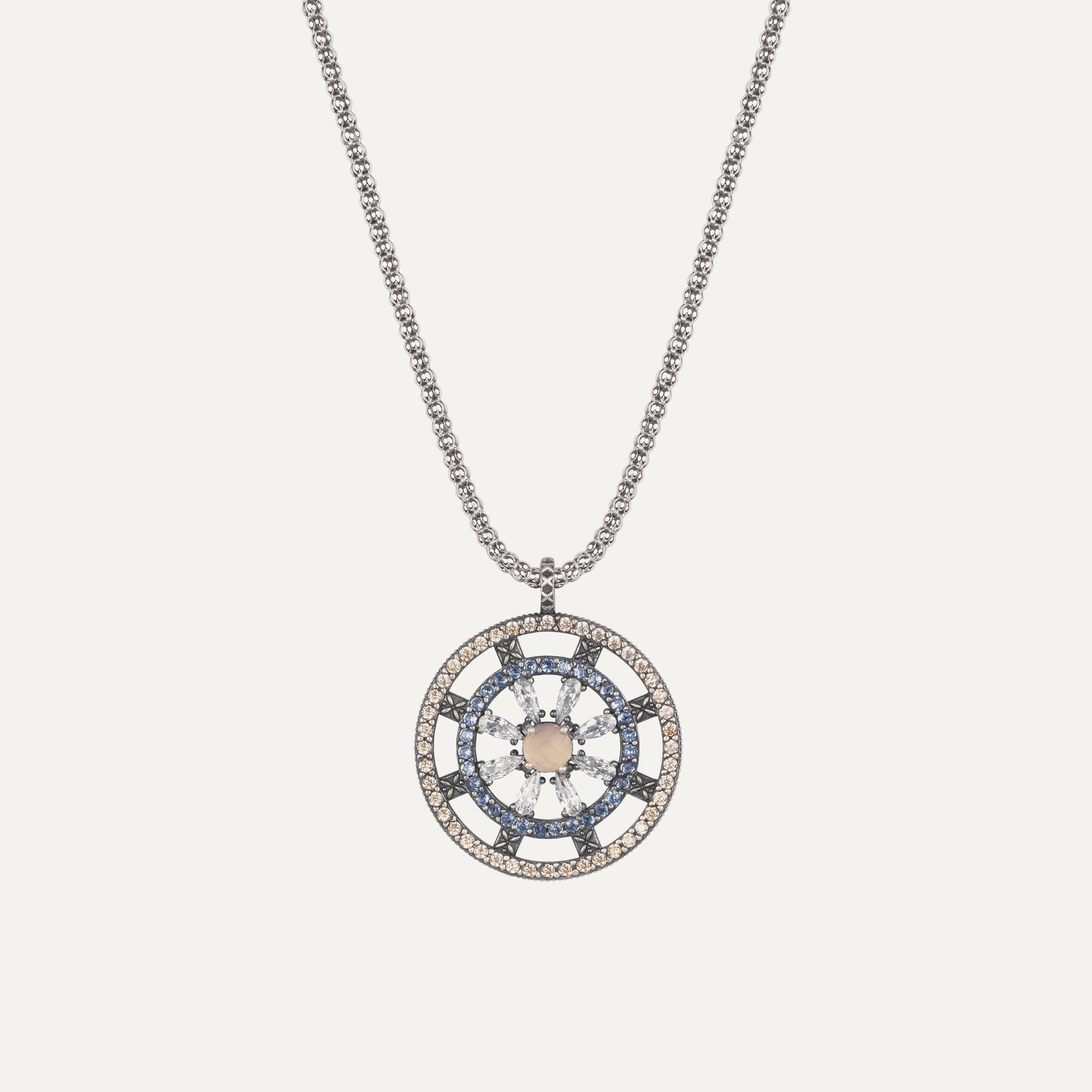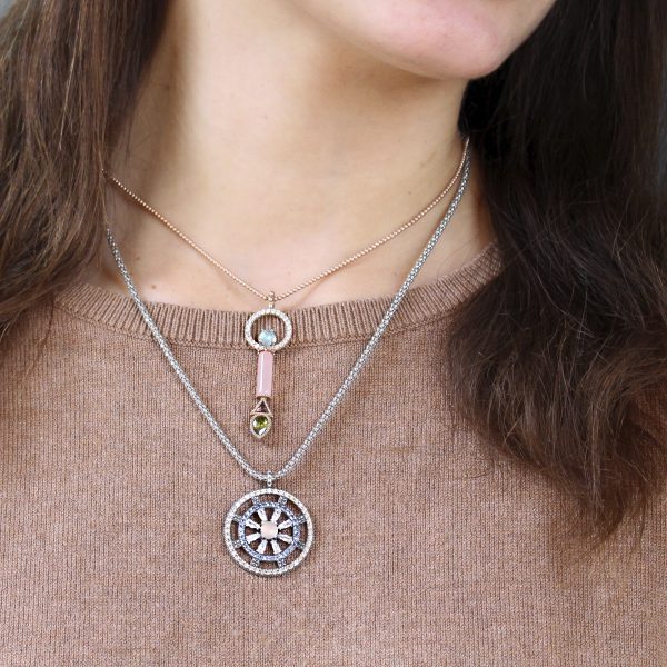 Pendant made of 925 sterling silver with 24kt rose gold plating, rose quartz, aquamarine and zirconia.