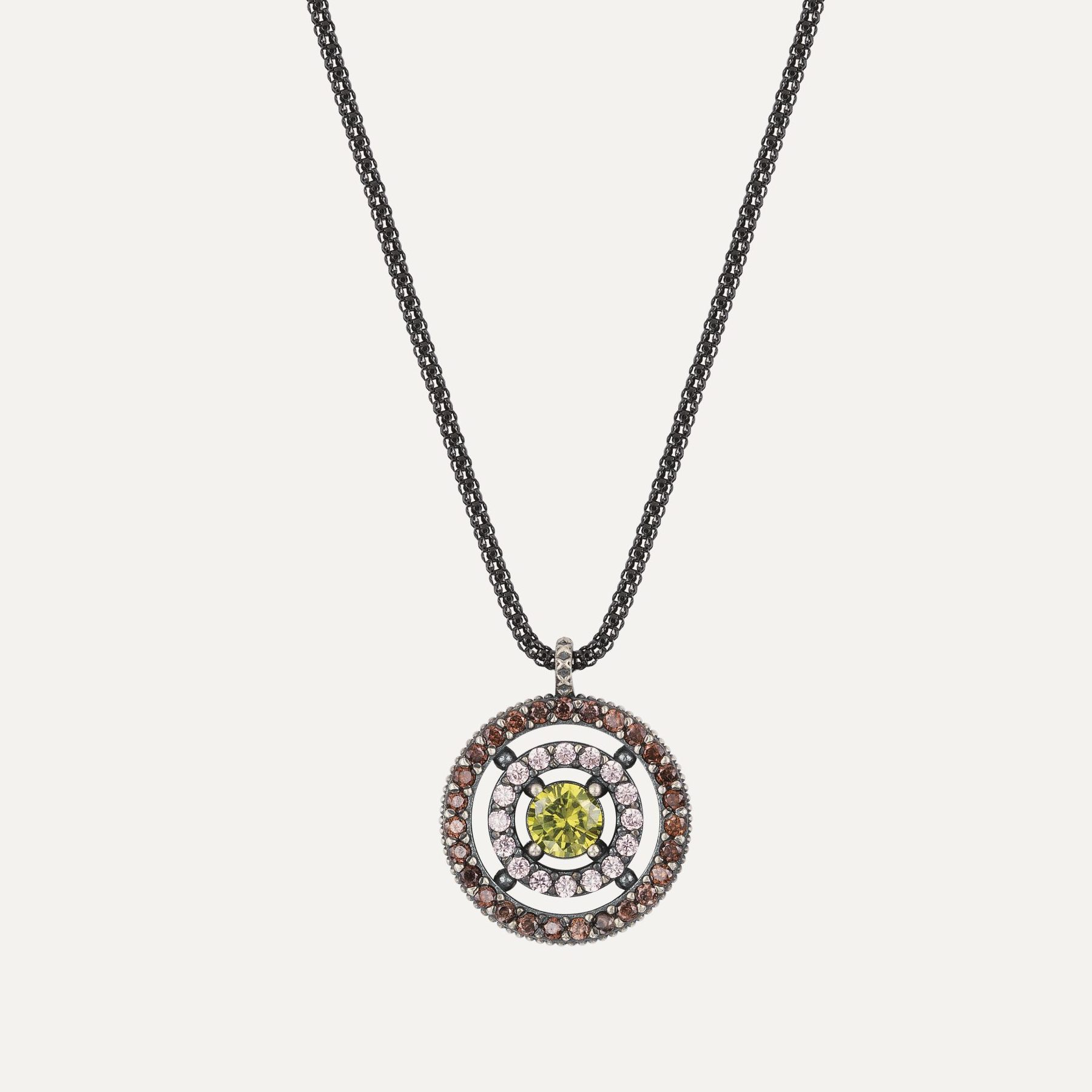 The Sunfield Paris pendants are delicate, balanced and with something in their design that makes them unusual and original. It is made of 925 sterling silver and consists of a central 5 mm diameter brown brilliant-cut zirconia from which hangs a piece of chain with a floral motif with brilliant-cut peridot zirconia. The chain is 41 cm long.