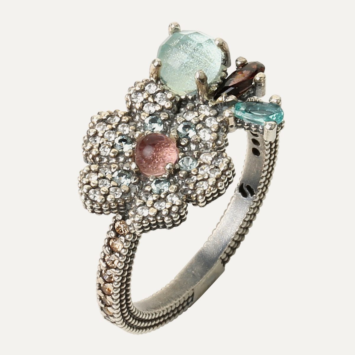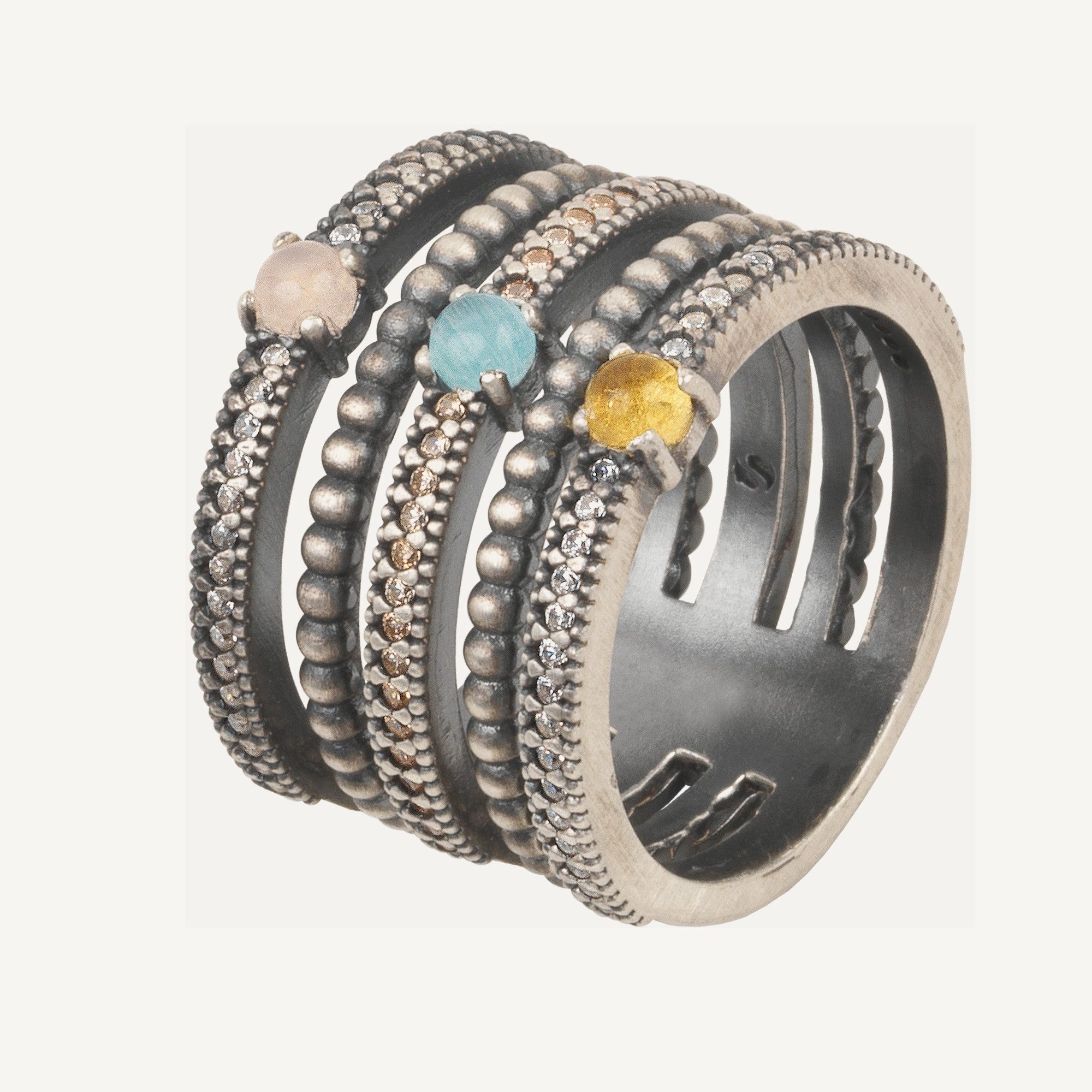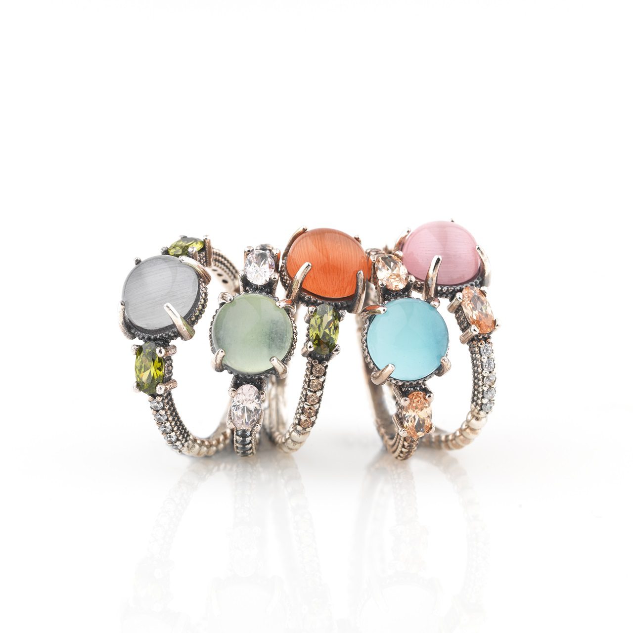 This small 1.5cm tricolor pendant has three of the most interesting gems for their properties and meaning: chalcedony which is associated with motherhood and fertility, pink tourmaline which has energizing properties, and citrine which attracts positivity and increases self-esteem.