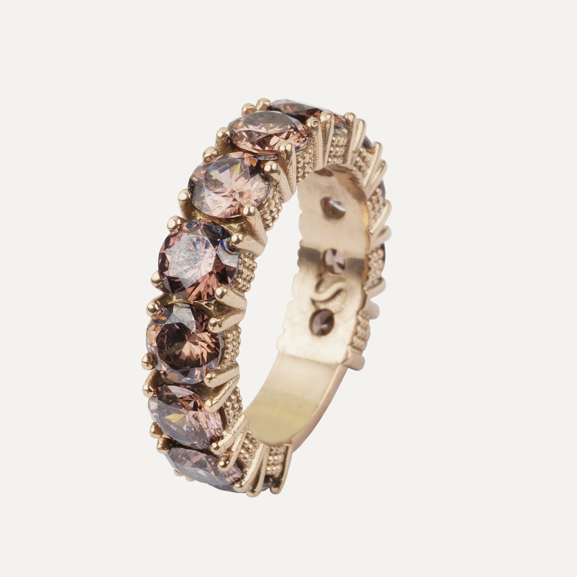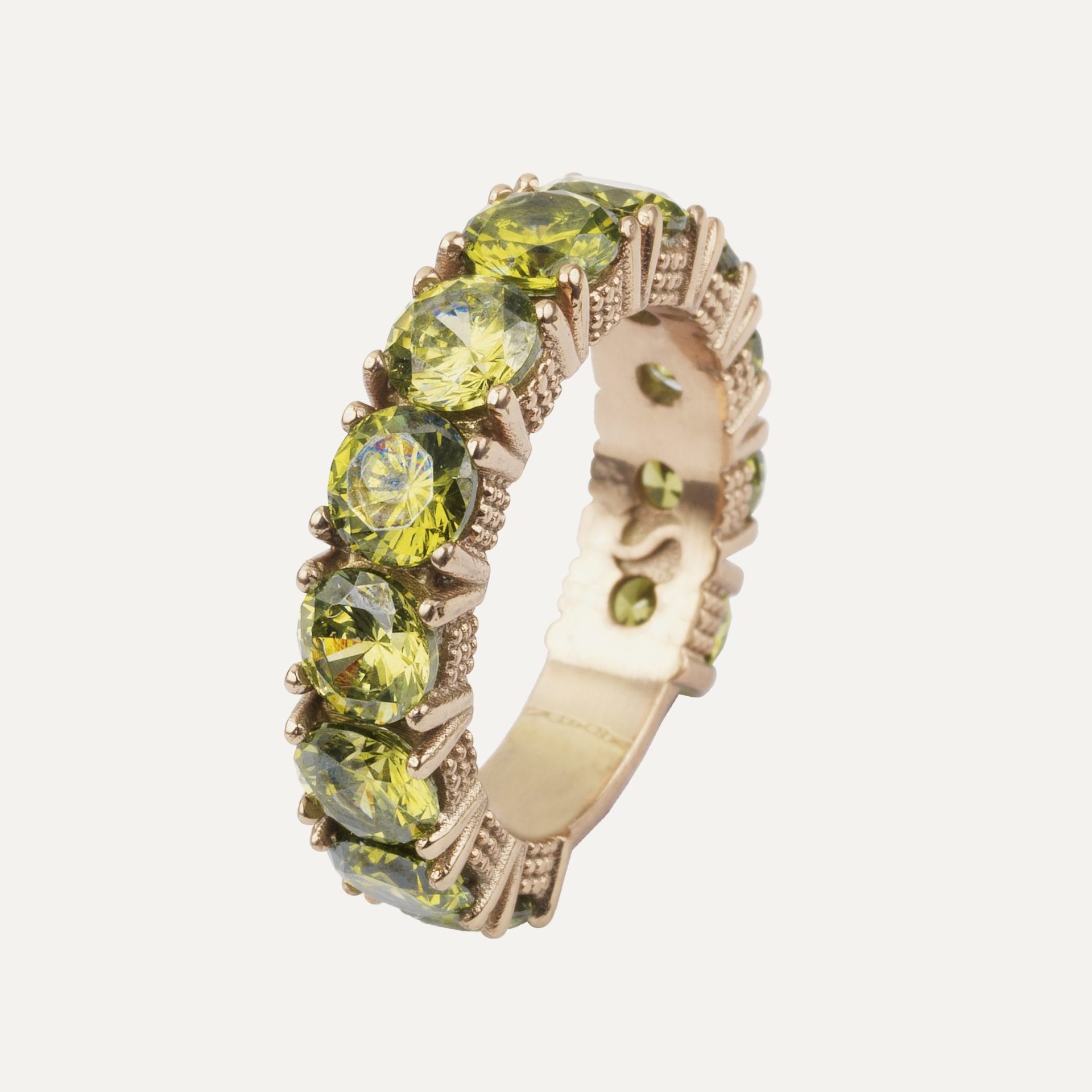 925 sterling silver ring with 24kt rose gold plating, peridot, pink tourmaline and zirconia.