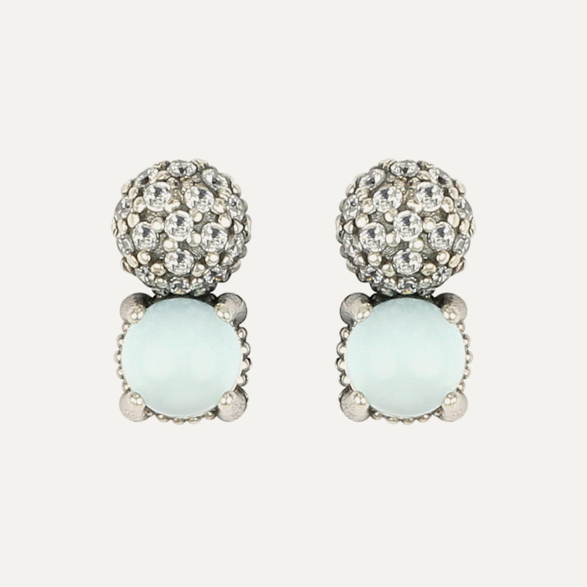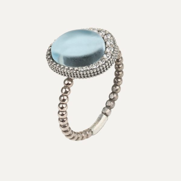 Original sterling silver ring of classic style with a modern touch. It highlights the large central cabochon in hydrothermal quartz of 8×10 mm carved irregularly, with a polished silver 925 arm finished by hand, with zircons nailed one by one in our workshops in Barcelona.