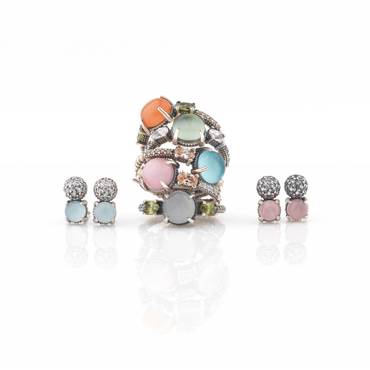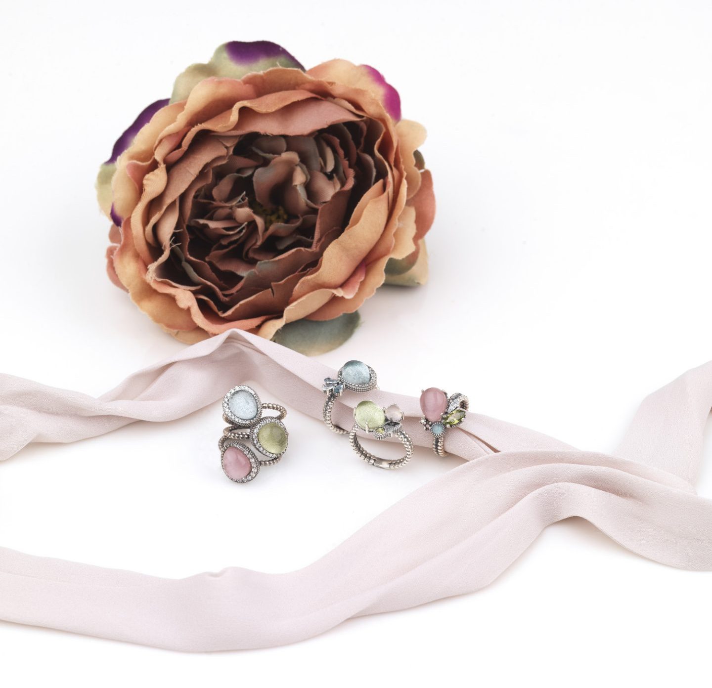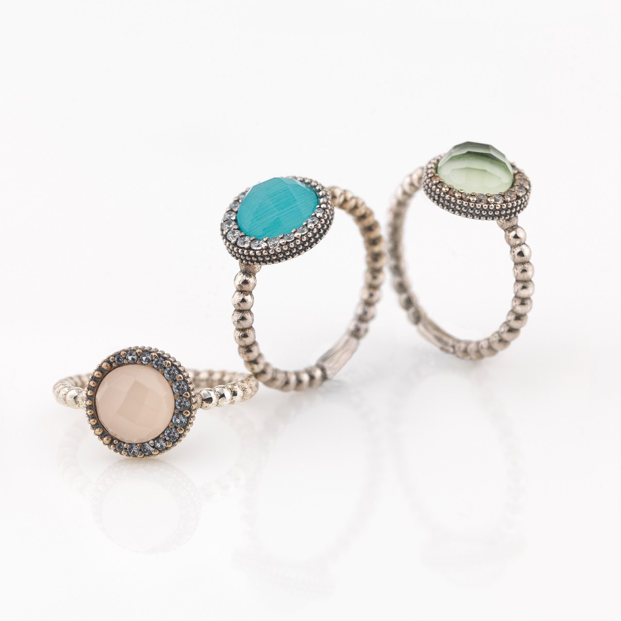 Sterling silver ring, colored quartz and zirconia, in three color combinations to choose from.