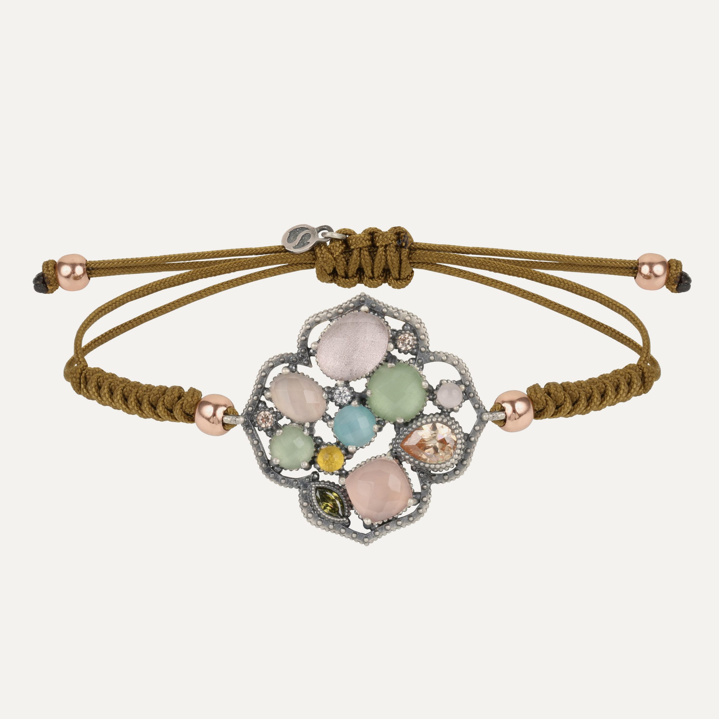 This small 1.5cm pendant stands out for its simplicity and colorfulness. A basic jewel that you can easily combine thanks to its three shades of a simple and balanced jewel: rose quartz at the top, a princess-cut zirconia in green in the center, and a bluish opal simile finishes the piece.