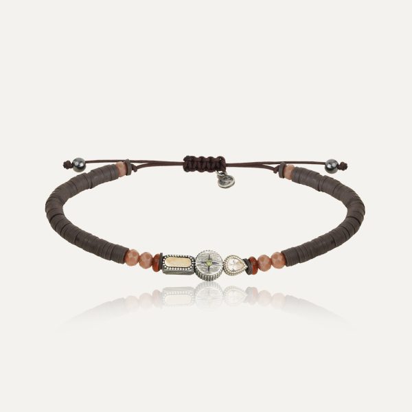 Pendant made of 925 silver, zirconia, glass beads, hematite, rubber and nylon.