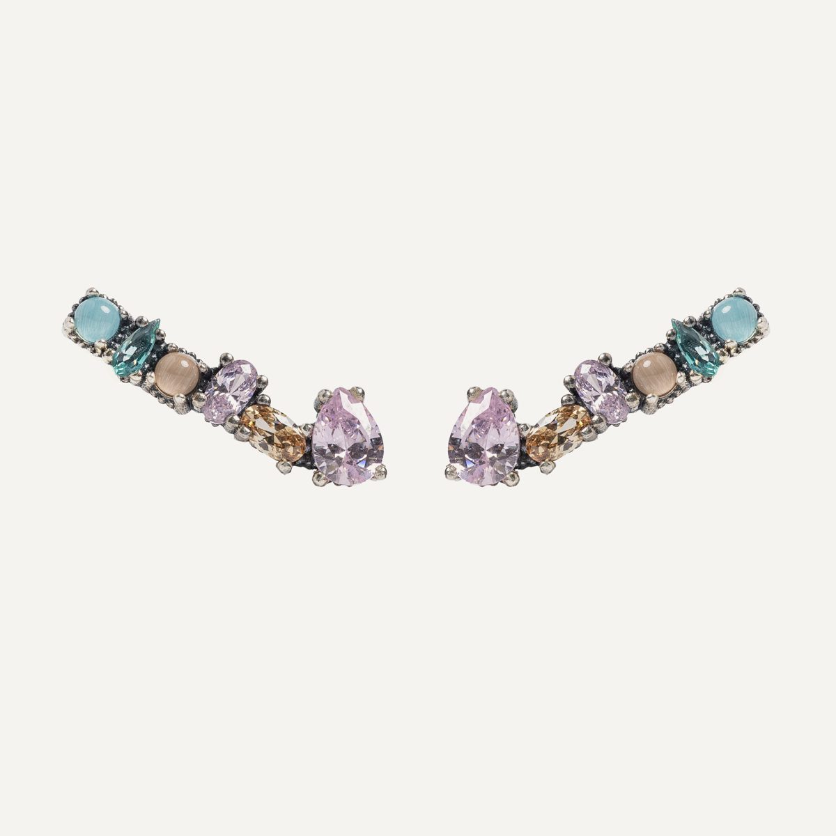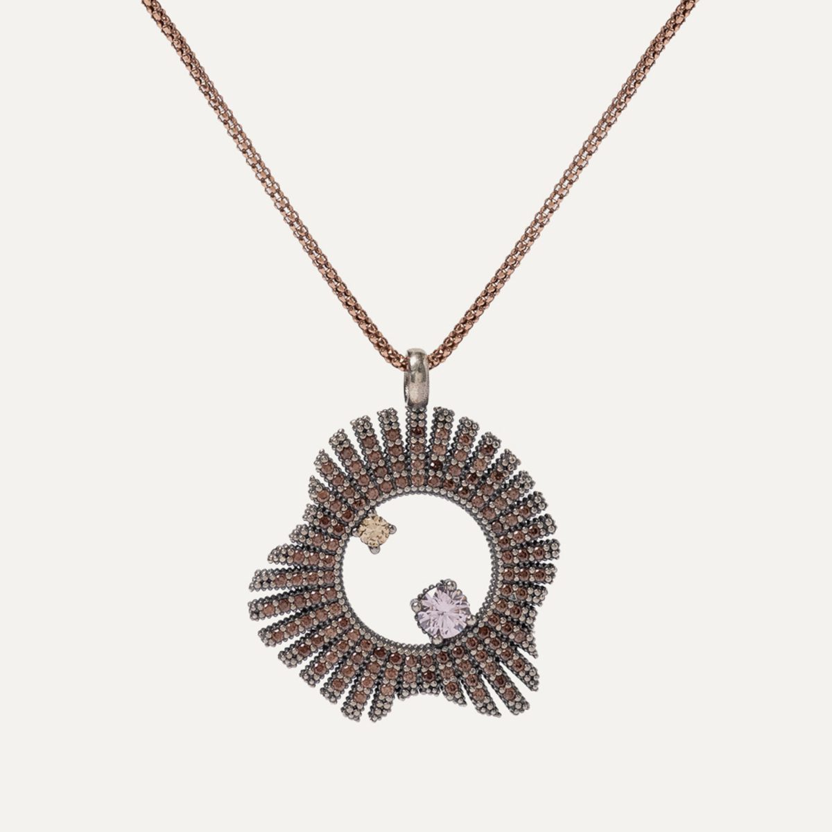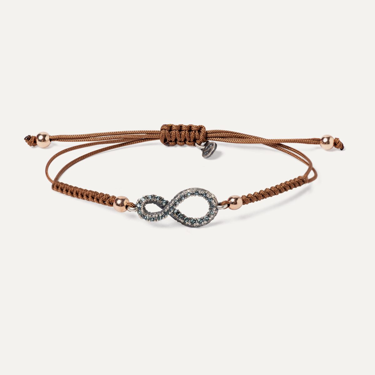 The Nova bracelet from the Zaia collection is a piece of jewelry that stands out for its delicate design inspired by the phases of the moon. The center of this bracelet features an irregular pattern in silver, adorned with sparkling white zirconias that capture the light in a subtle way, evoking the glow of the moon in its different phases. The antiqued silver design with 24kt rose gold-plated details is complemented by an elegant and feminine adjustable pink macramé cord, which not only adds comfort, but also adds a modern and soft touch to the set.