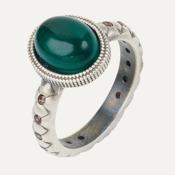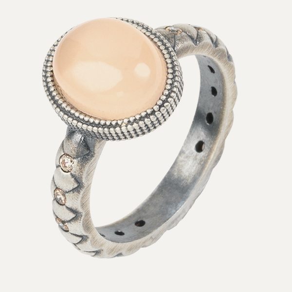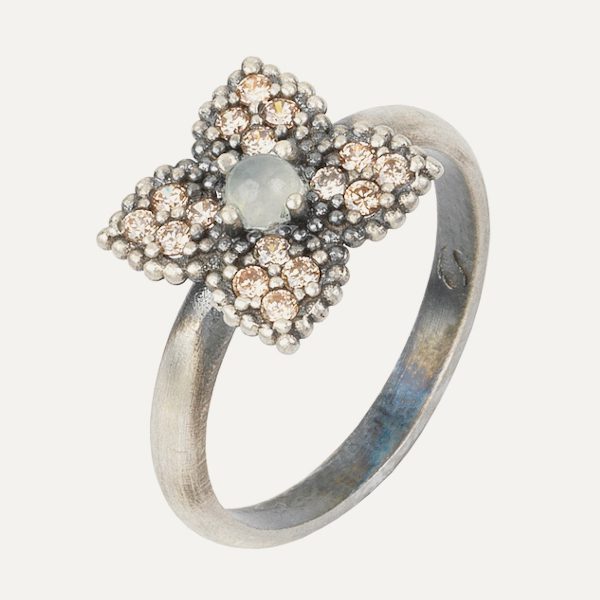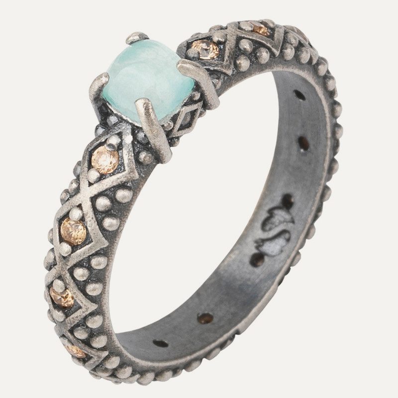 925 sterling silver ring with antique finish, chalcedony and zirconia.