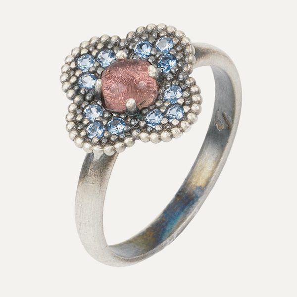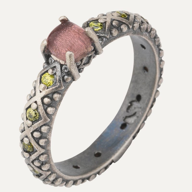 925 sterling silver ring with antique finish, pink tourmaline and zirconia.