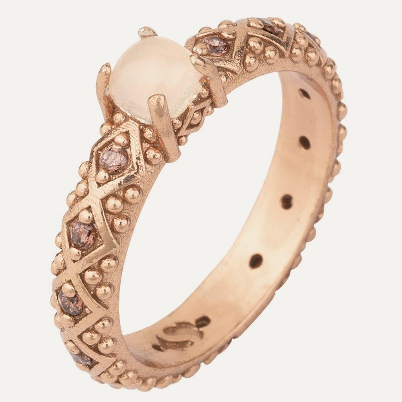 Ring made of 925 sterling silver with 24kt rose gold plating, quartz and zirconia, in two color combinations to choose from.